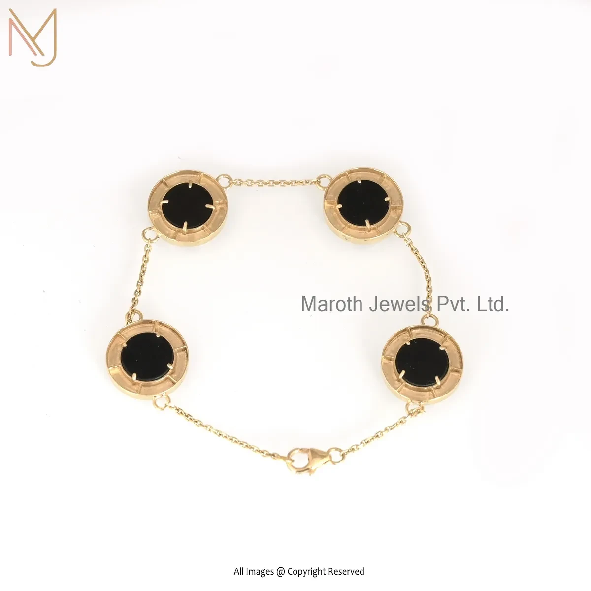 Wholesale 14K Yellow Gold Black Onyx Gemstone Anti Tarnish Bracelet