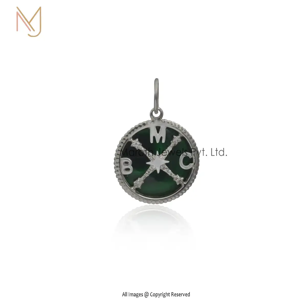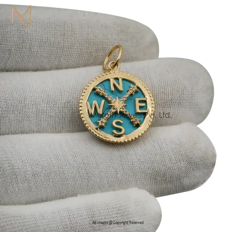 Wholesale 14K Yellow Gold Black Onyx Gemstone Compass Pendant Jewelry