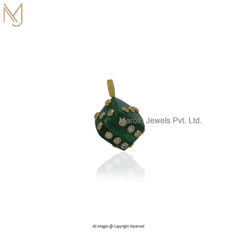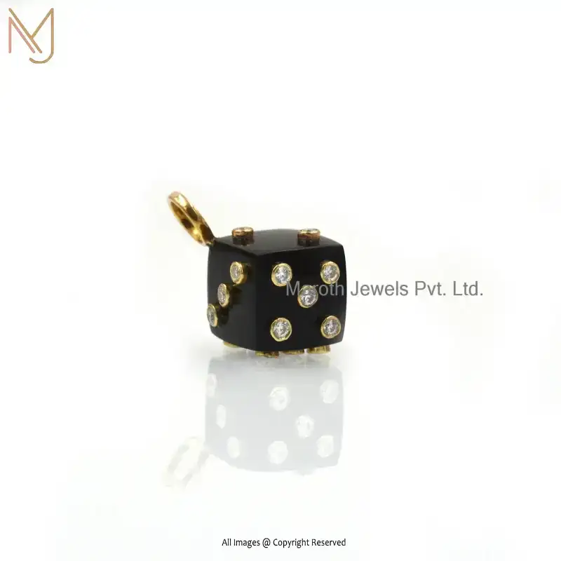 Wholesale 14K Yellow Gold Black Onyx & Moissanite Gemstons Dice Pendant