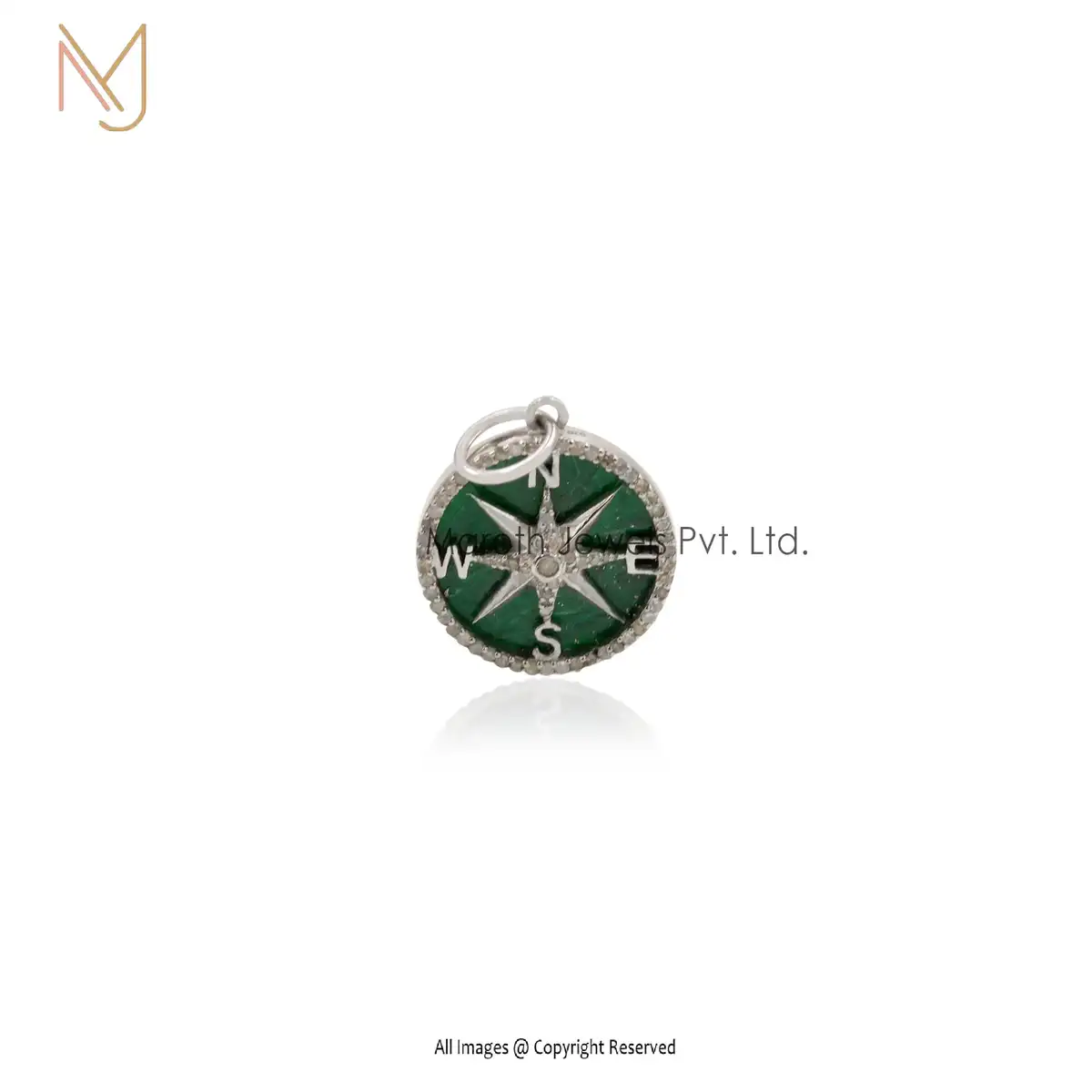Wholesale 14K Yellow Gold Blue Labradorite & White CZ Compass Pendant Jewelry