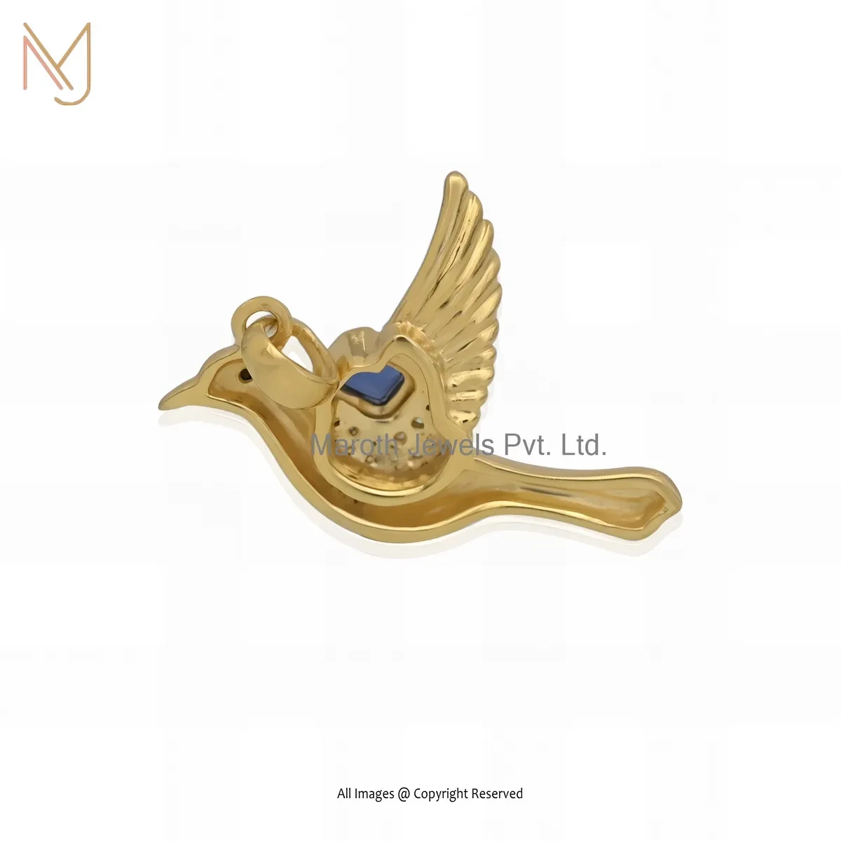 Wholesale 14K Yellow Gold Blue Sapphire & CZ Black Spinel Flying Bird Pendant
