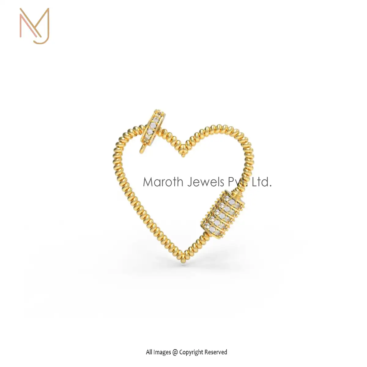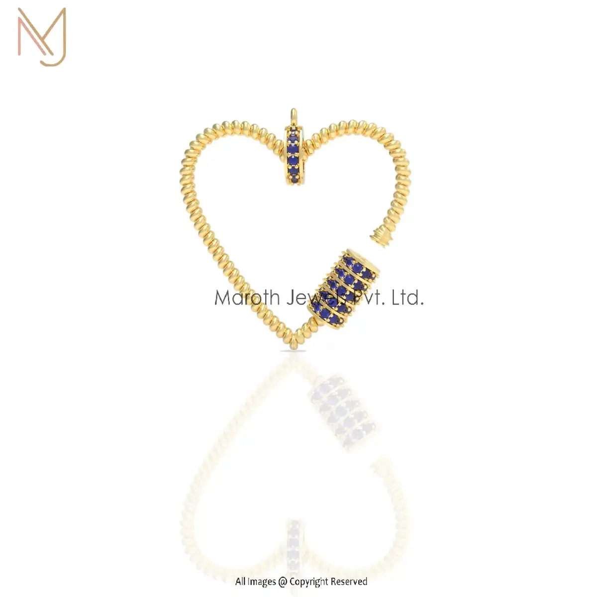 Wholesale 14K Yellow Gold Blue Sapphire Gemstone Twisted Wire Heart Carabiner
