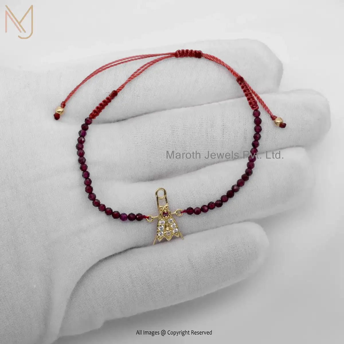 Wholesale 14K Yellow Gold Bug Cubic Zircon Garnet Beads Bracelet Jewelry