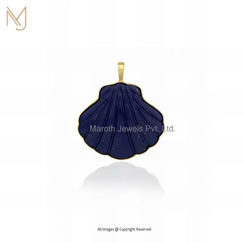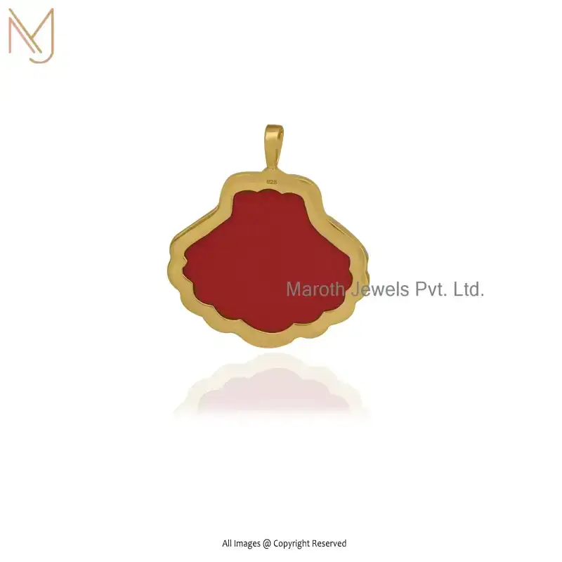 Wholesale 14K Yellow Gold Coral And Moissanite Gemstone Shell Pendant
