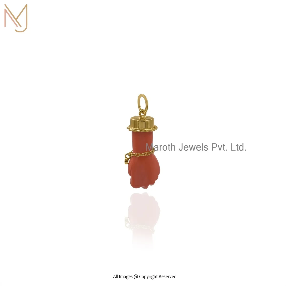 Wholesale 14K Yellow Gold Coral And White Cubic Zircon Figa Pendant