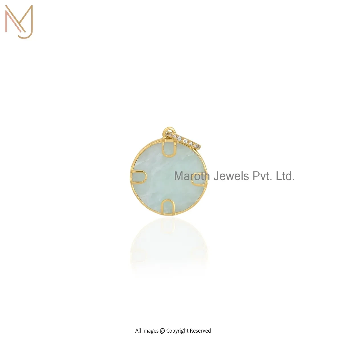 Wholesale 14K Yellow Gold Cubic Zircon & Amazonite Gemstone Disc Star Pendant