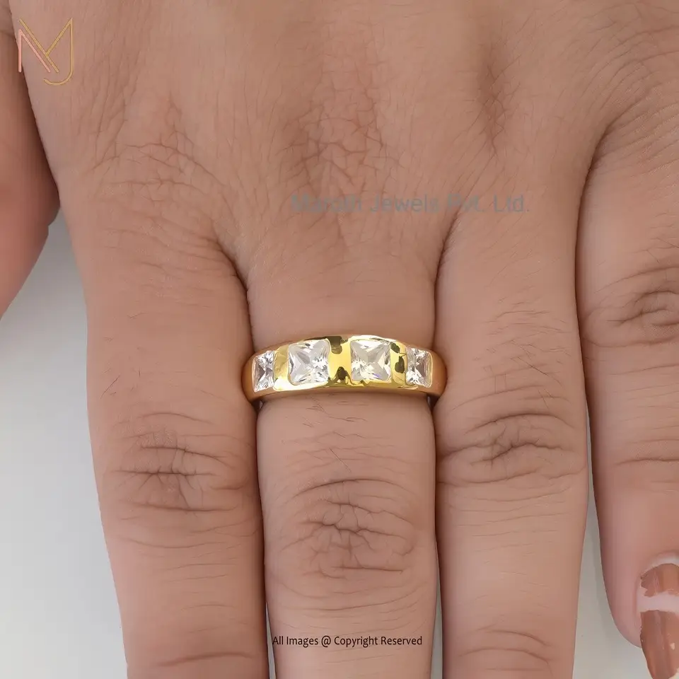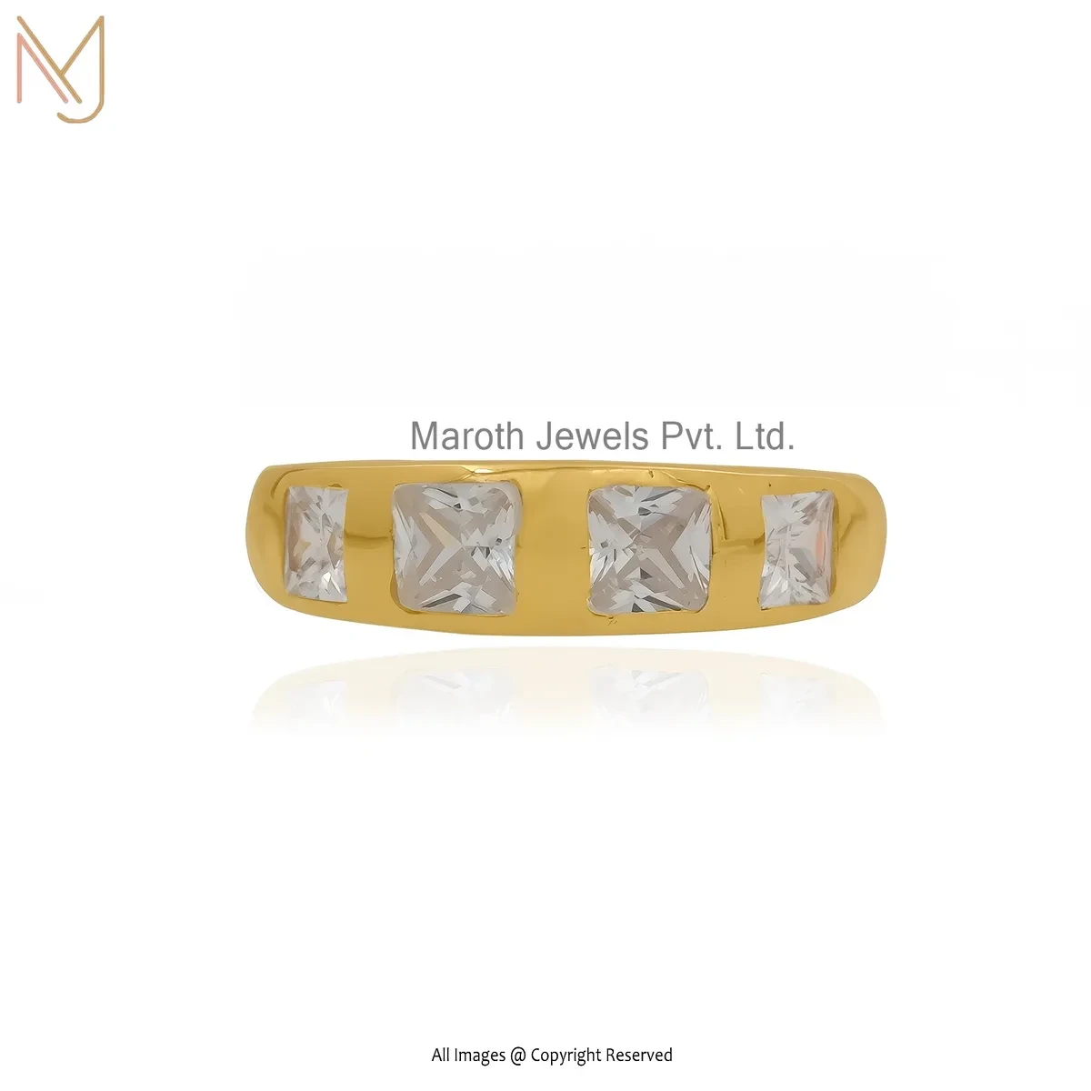 Wholesale 14K Yellow Gold Cubic Zircon Baguette And Square Shape Diamond Ring