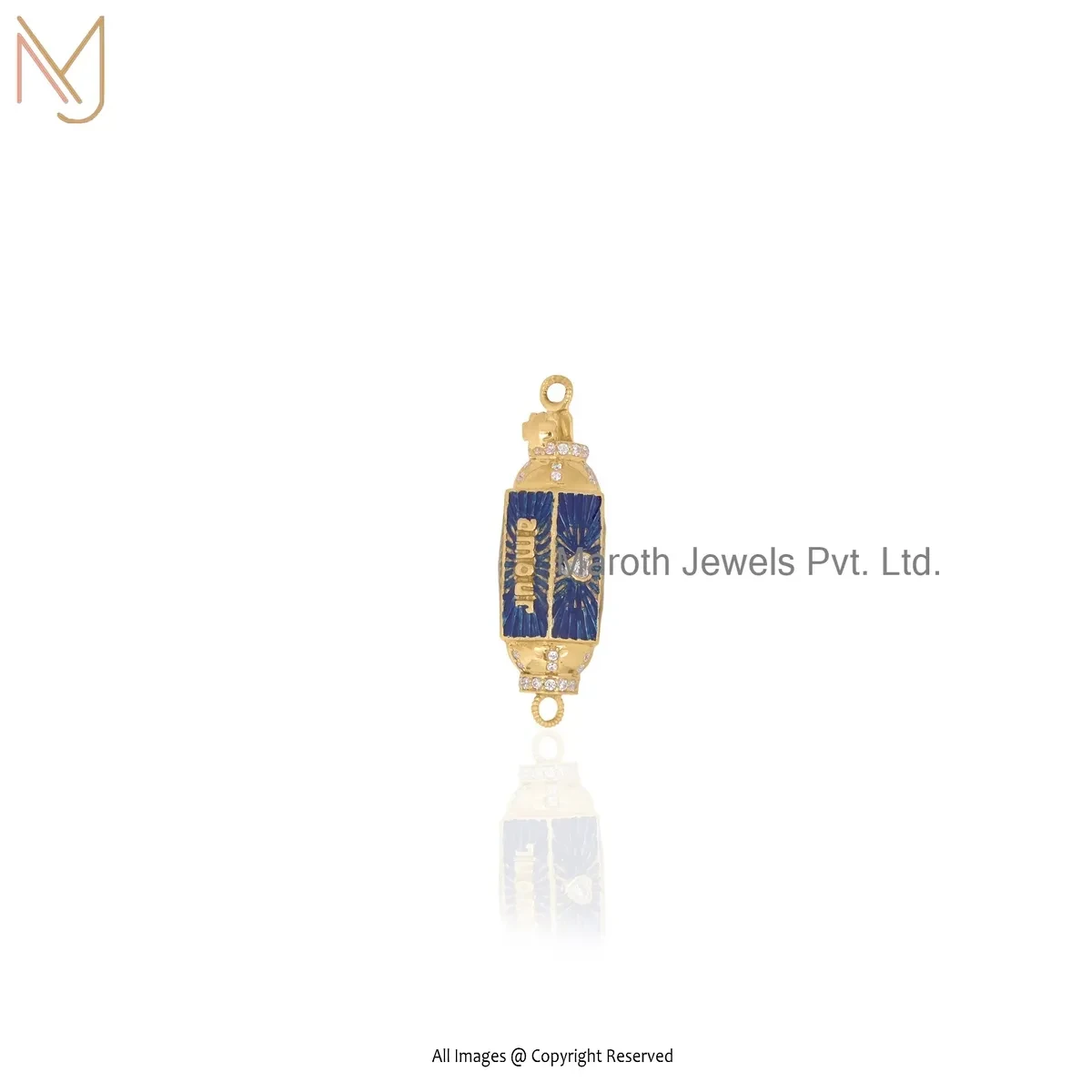 Wholesale 14K Yellow Gold Cubic Zircon & Black Enamel Amulet Pendant