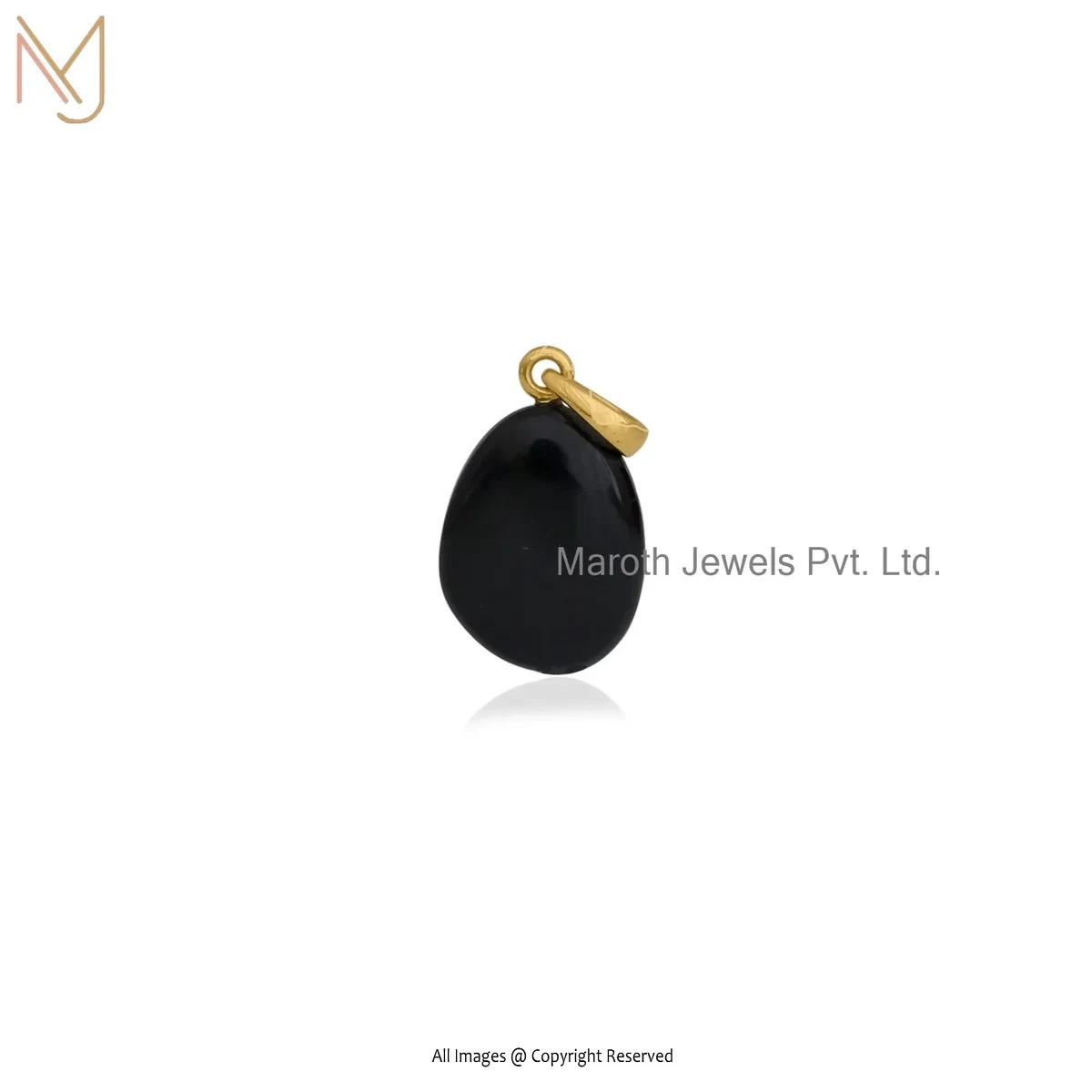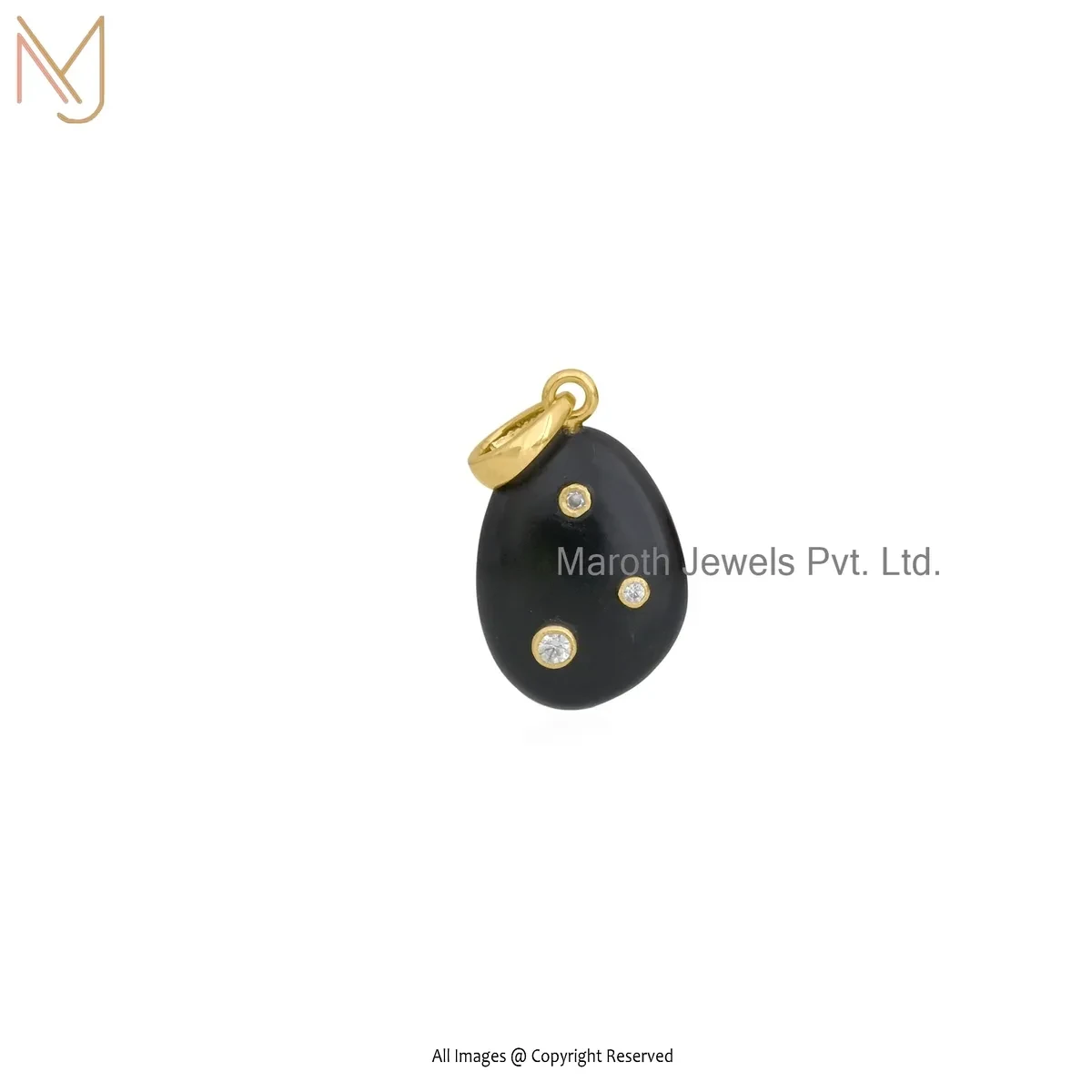 Wholesale 14K Yellow Gold Cubic Zircon & Black Onyx Gemstone Teardrop Charm Pendant