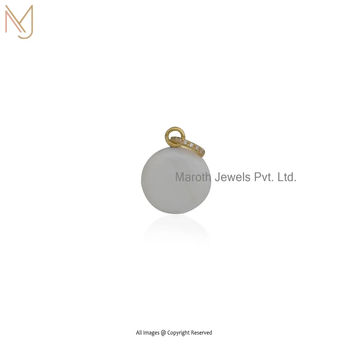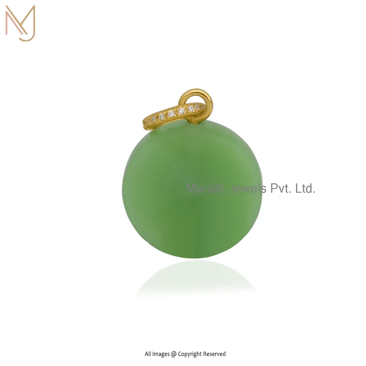 Wholesale 14K Yellow Gold Cubic Zircon & Blue Sapphire And Green Opal Disc Pendant