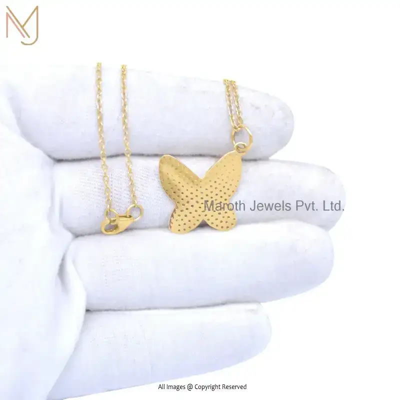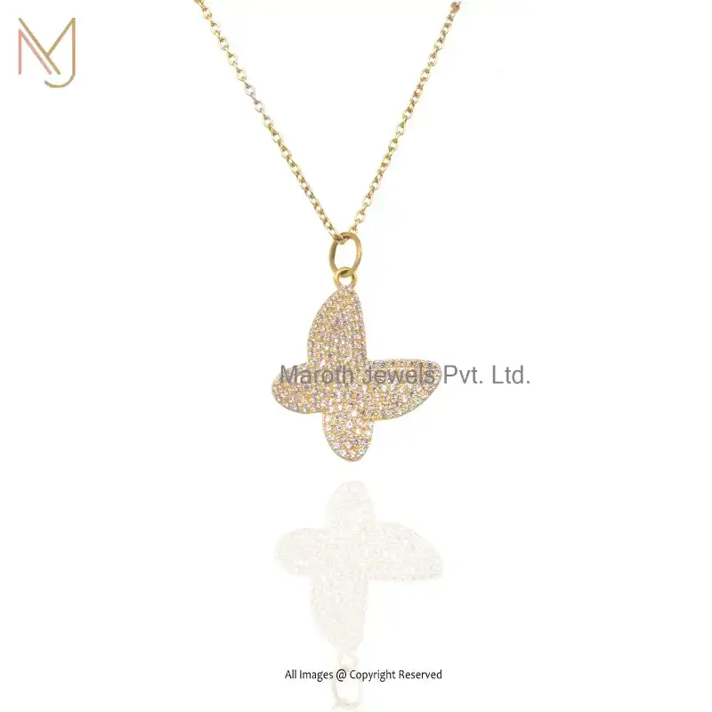 Wholesale 14K Yellow Gold Diamond Cubic Zircon Butterfly Pendant Jewelry