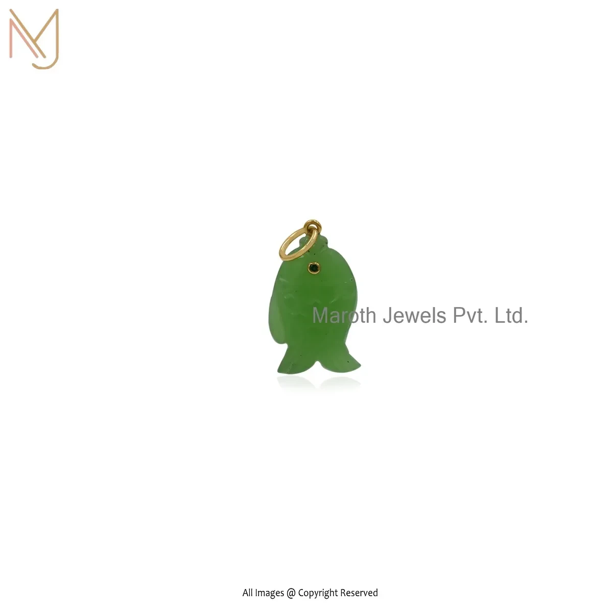 Wholesale 14K Yellow Gold Cubic Zircon & Green Opal Gemstone Fish Pendant