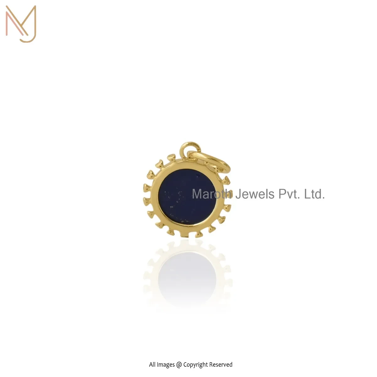 Wholesale 14K Yellow Gold Cubic Zircon & Lapiz Lazuli Gemstone Star Diamond Disc Pendant