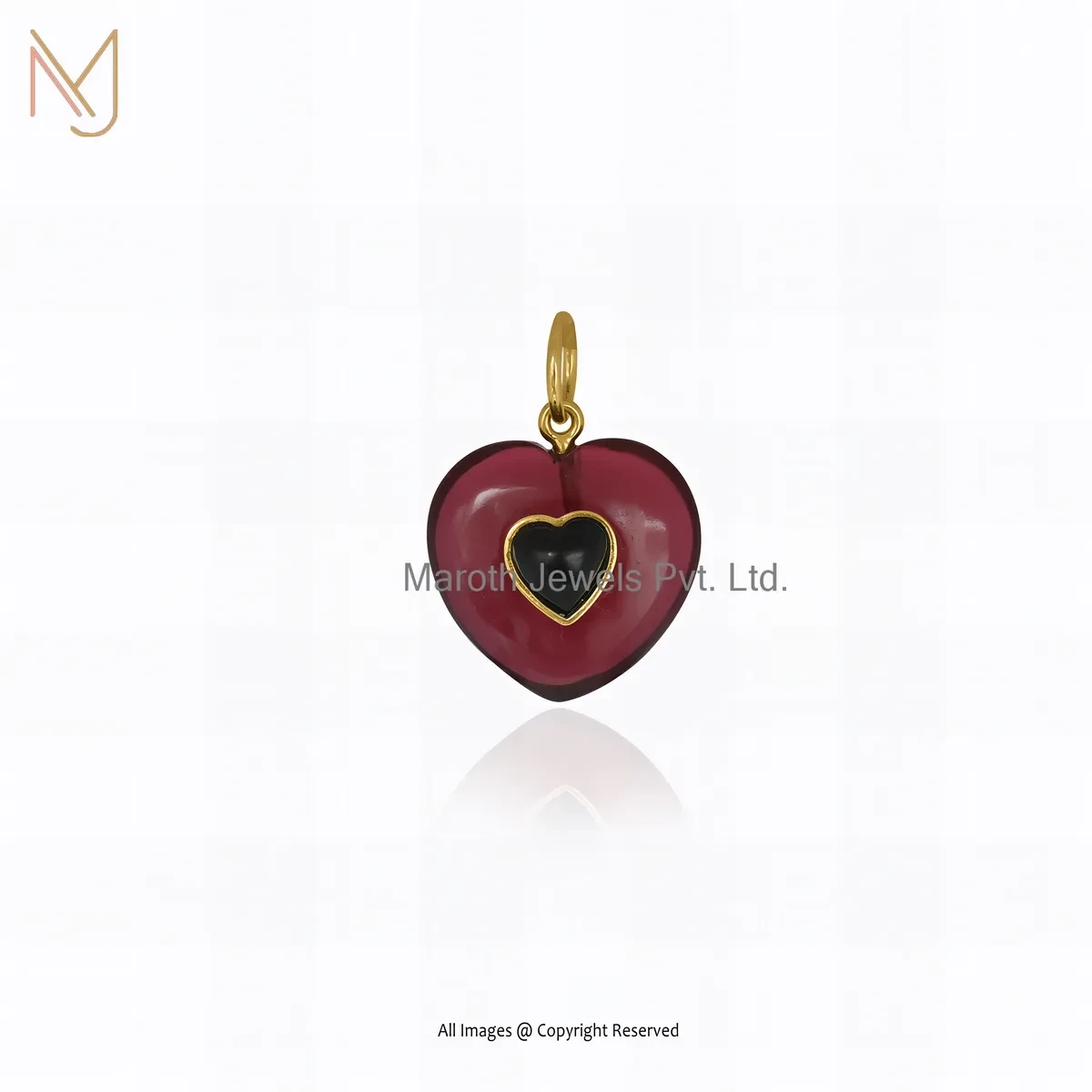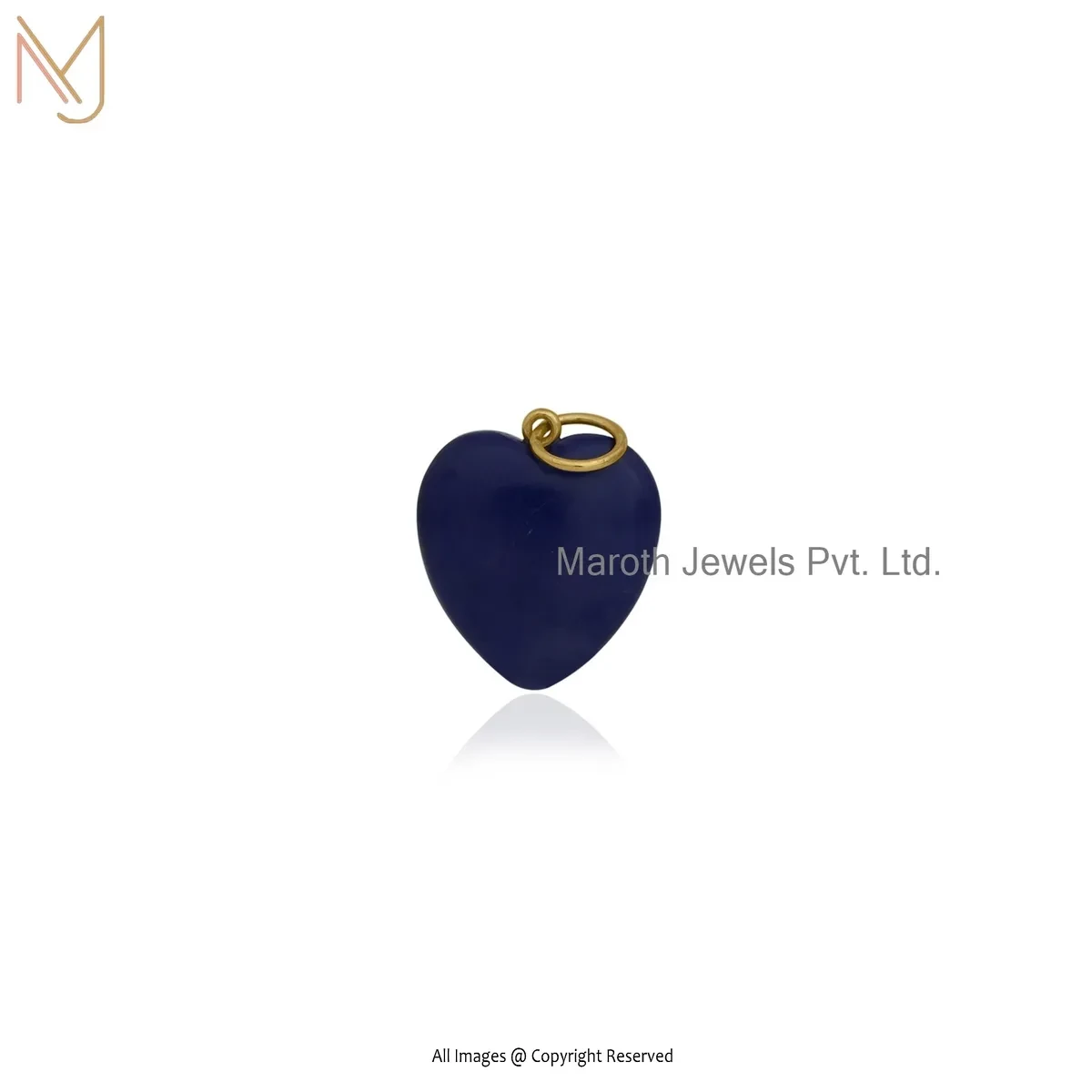 Wholesale 14K Yellow Gold Cubic Zircon & Lapiz Lazuli Heart Charm Pendant