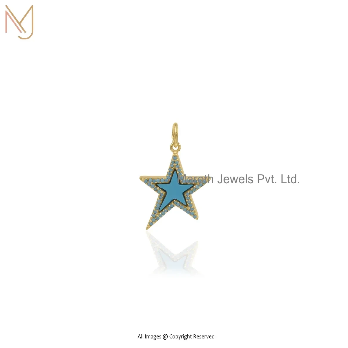Wholesale 14K Yellow Gold Cubic Zircon & Moonstone Gemstone Star Pendant