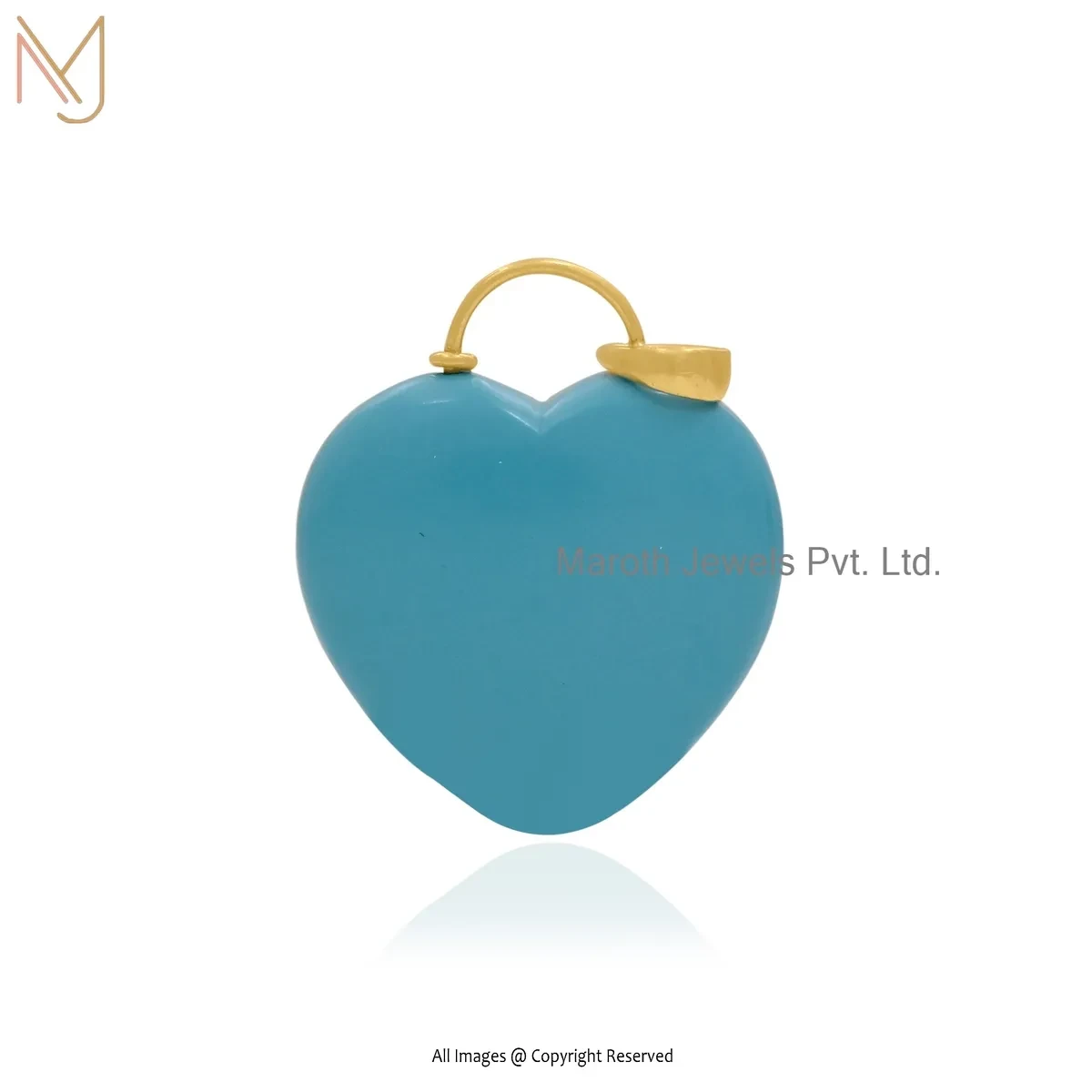 Wholesale 14K Yellow Gold Cubic Zircon & Turquoise Gemstone Heart Pendant