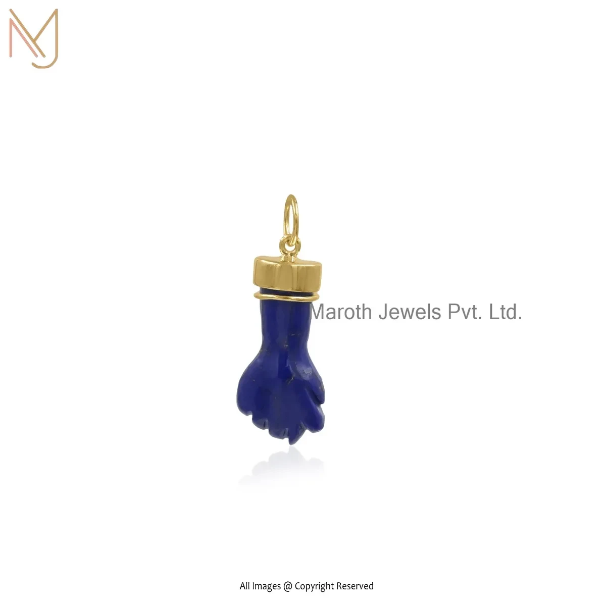Wholesale 14K Yellow Gold Diamond Cubic Zircon & Lapiz Lazuli Gemstone Figa Pendant
