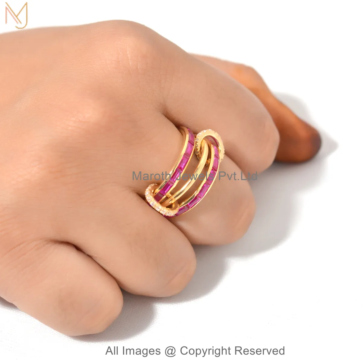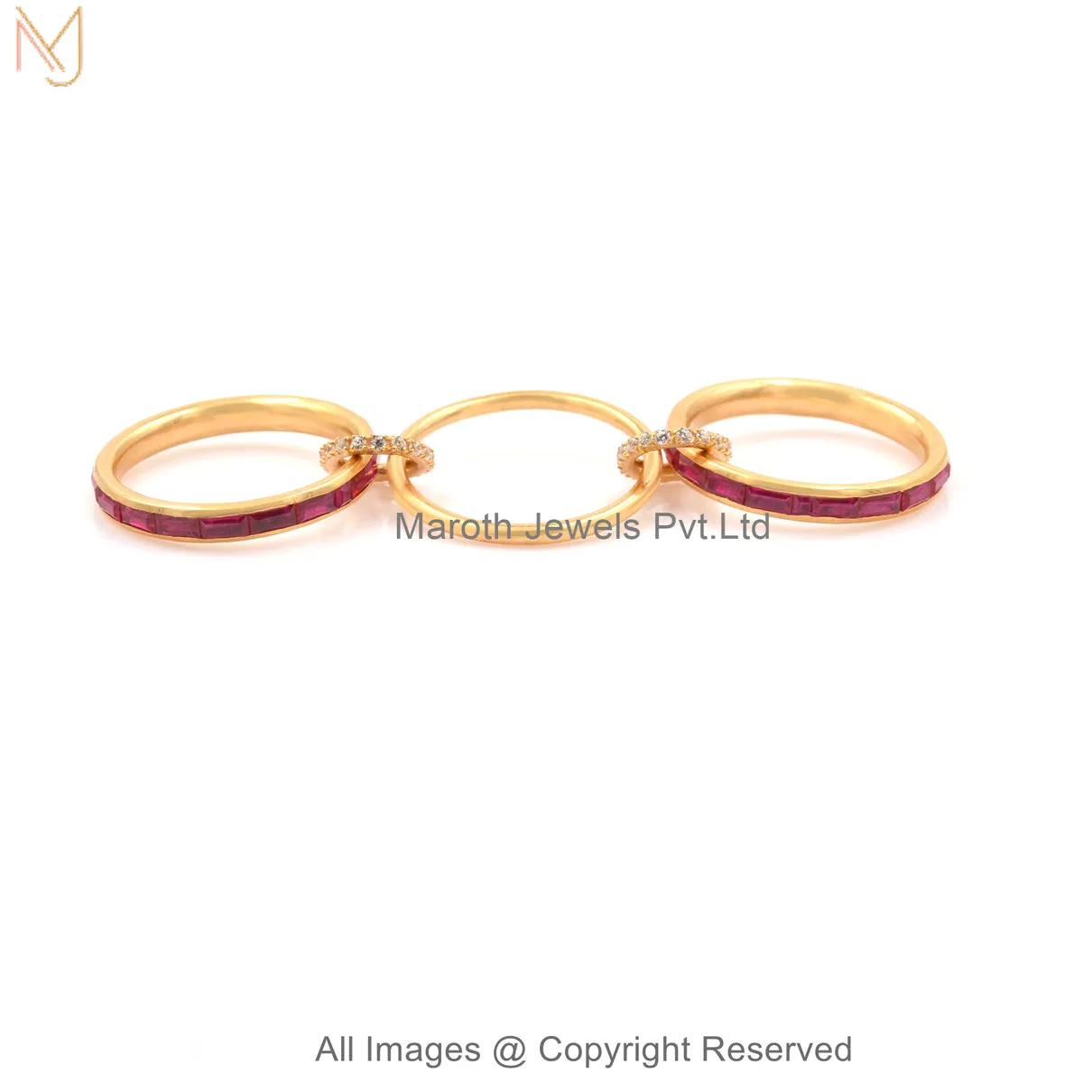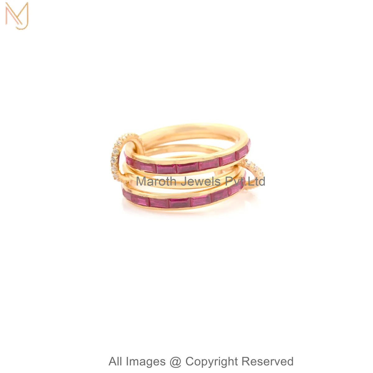 Wholesale 14K Yellow Gold Diamond Gemstone Baguette Wrap Connector Band Ring