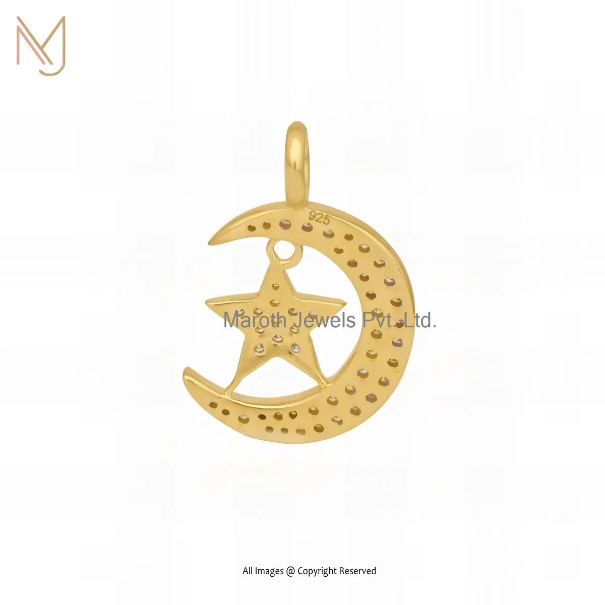 Wholesale 14K Yellow Gold Diamond & Moissanite Moon Star Pendant