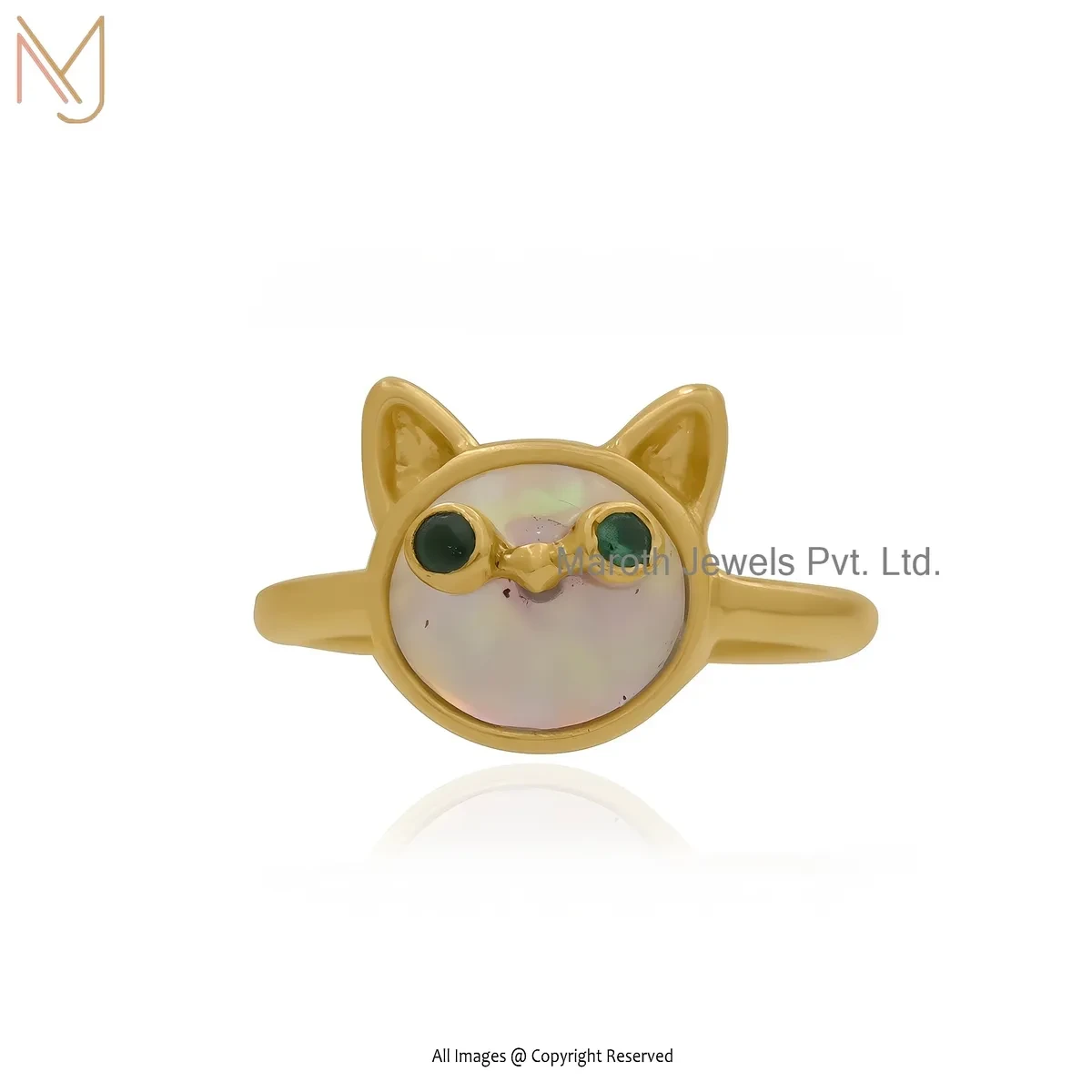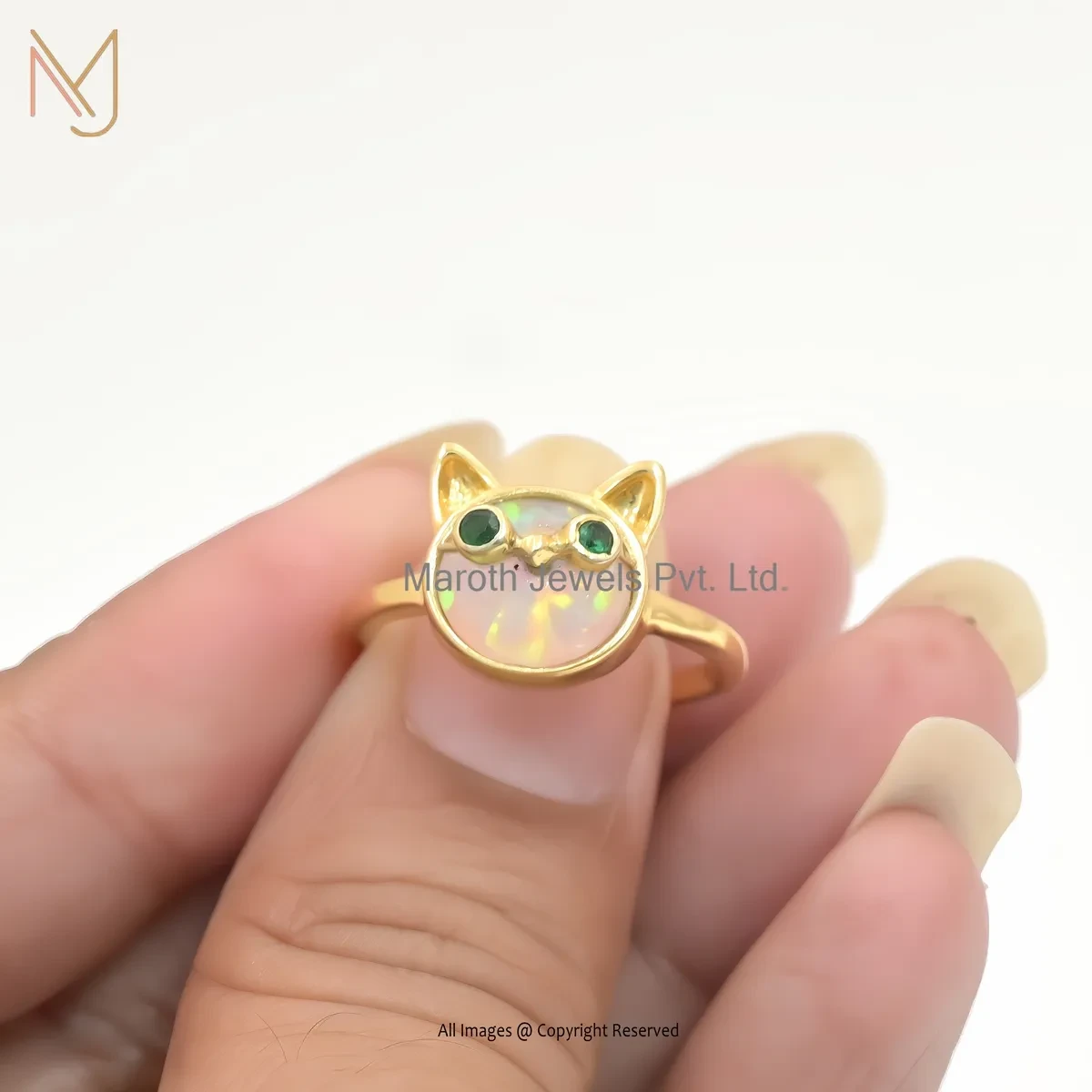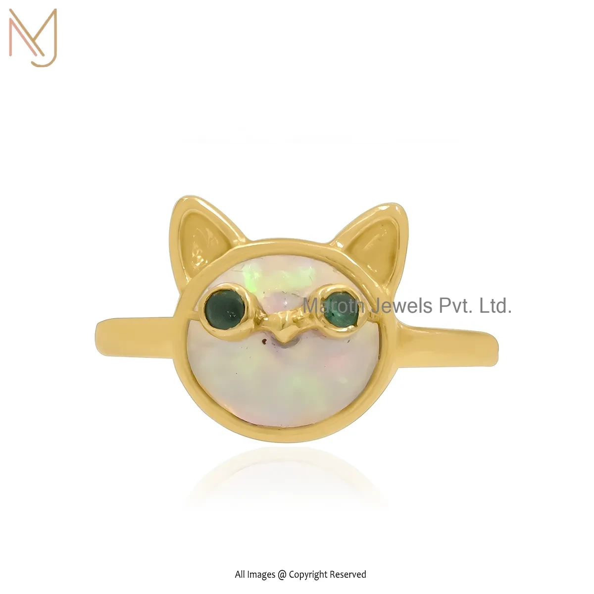 Wholesale 14K Yellow Gold Ethiopian Opal And Emerald Cat Face Ring