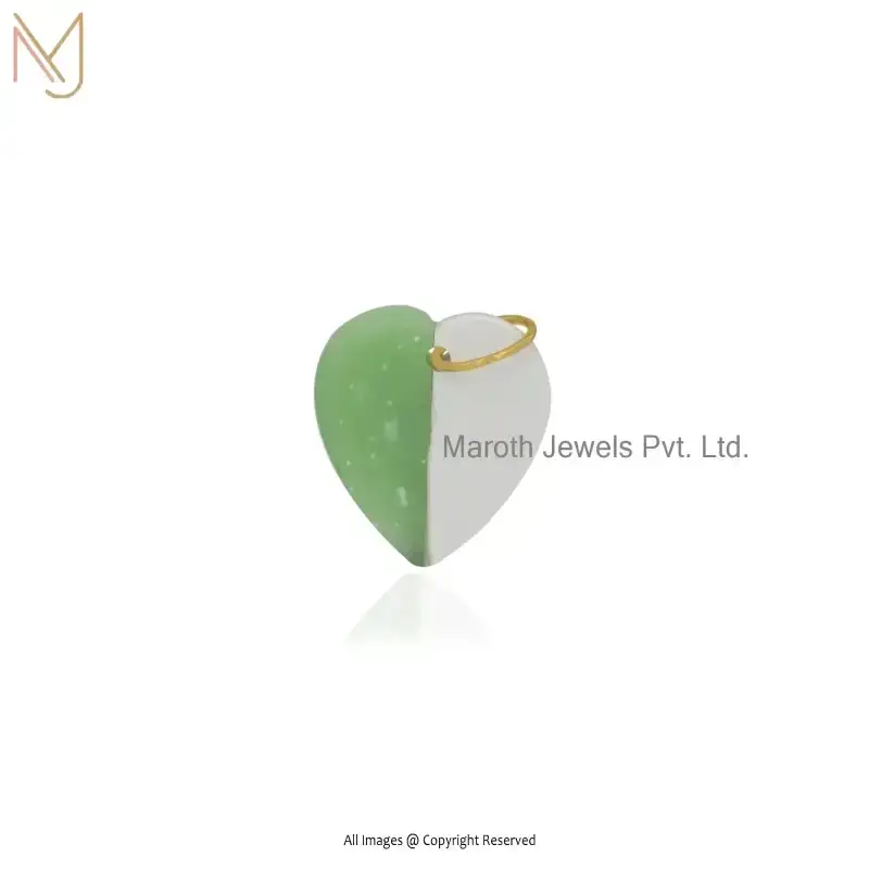Wholesale 14K Yellow Gold Green Opal And Moonstone White CZ Letter Amore Heart Pendant