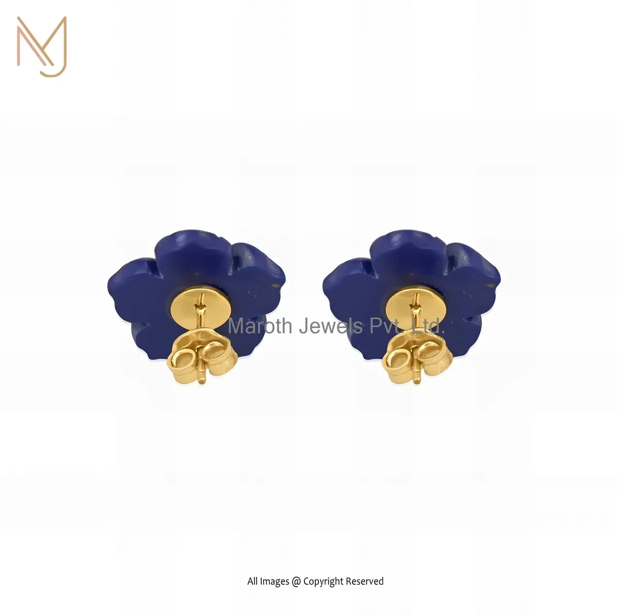 Wholesale 14K Yellow Gold Lapiz Lazuli And Turquoise Flower Earring