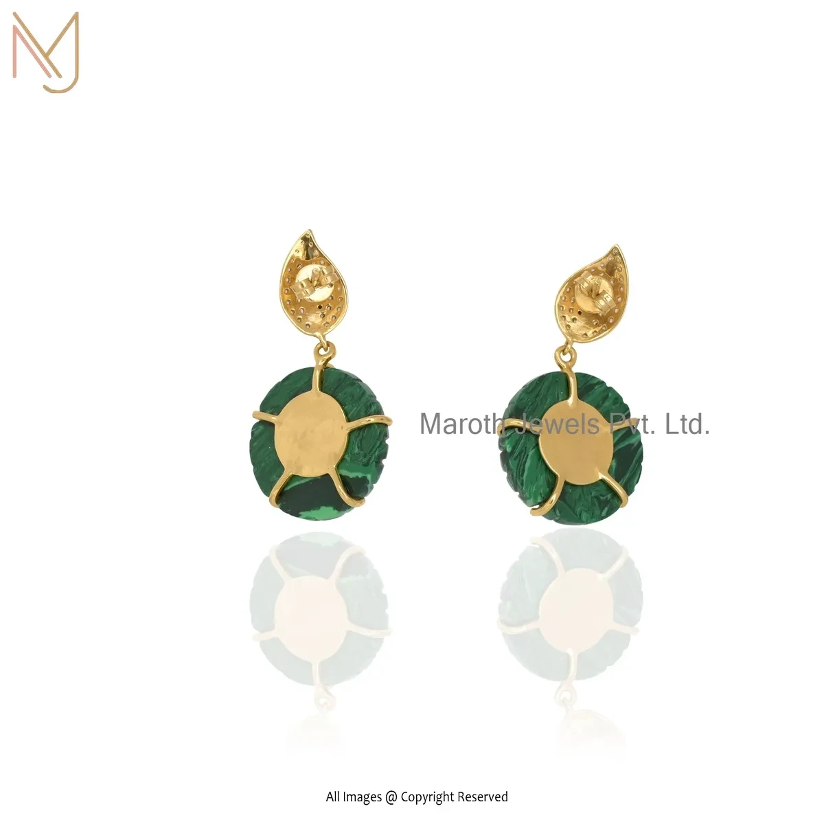 Wholesale 14K Yellow Gold Malachite & Cubic Zircon Flower Earring