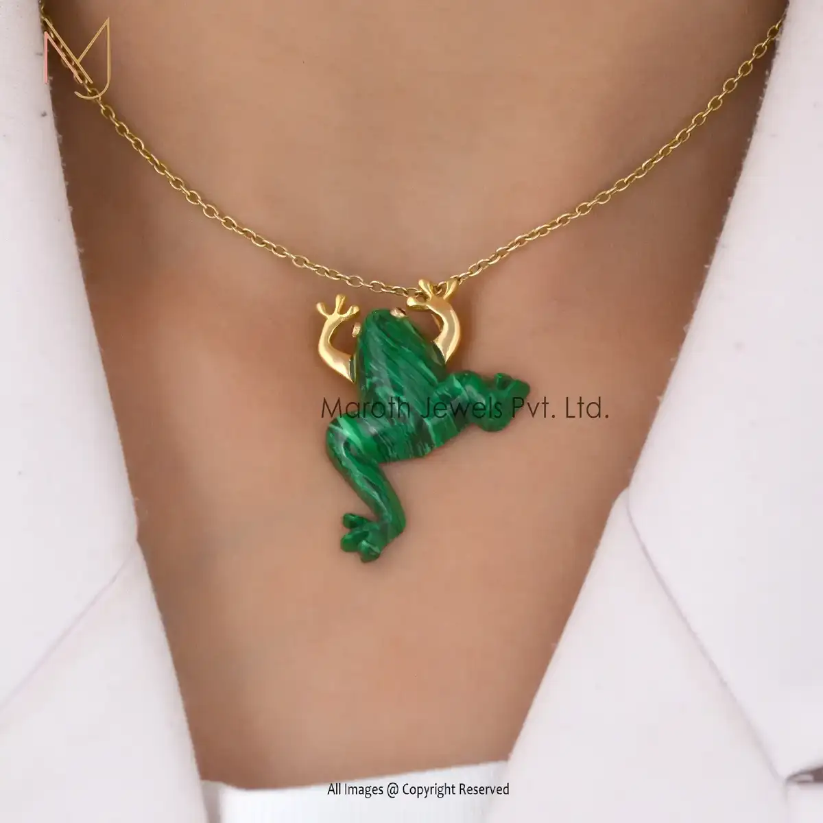 Wholesale 14K Yellow Gold Malachite & CZ And Black Spinel Pendant Jewelry
