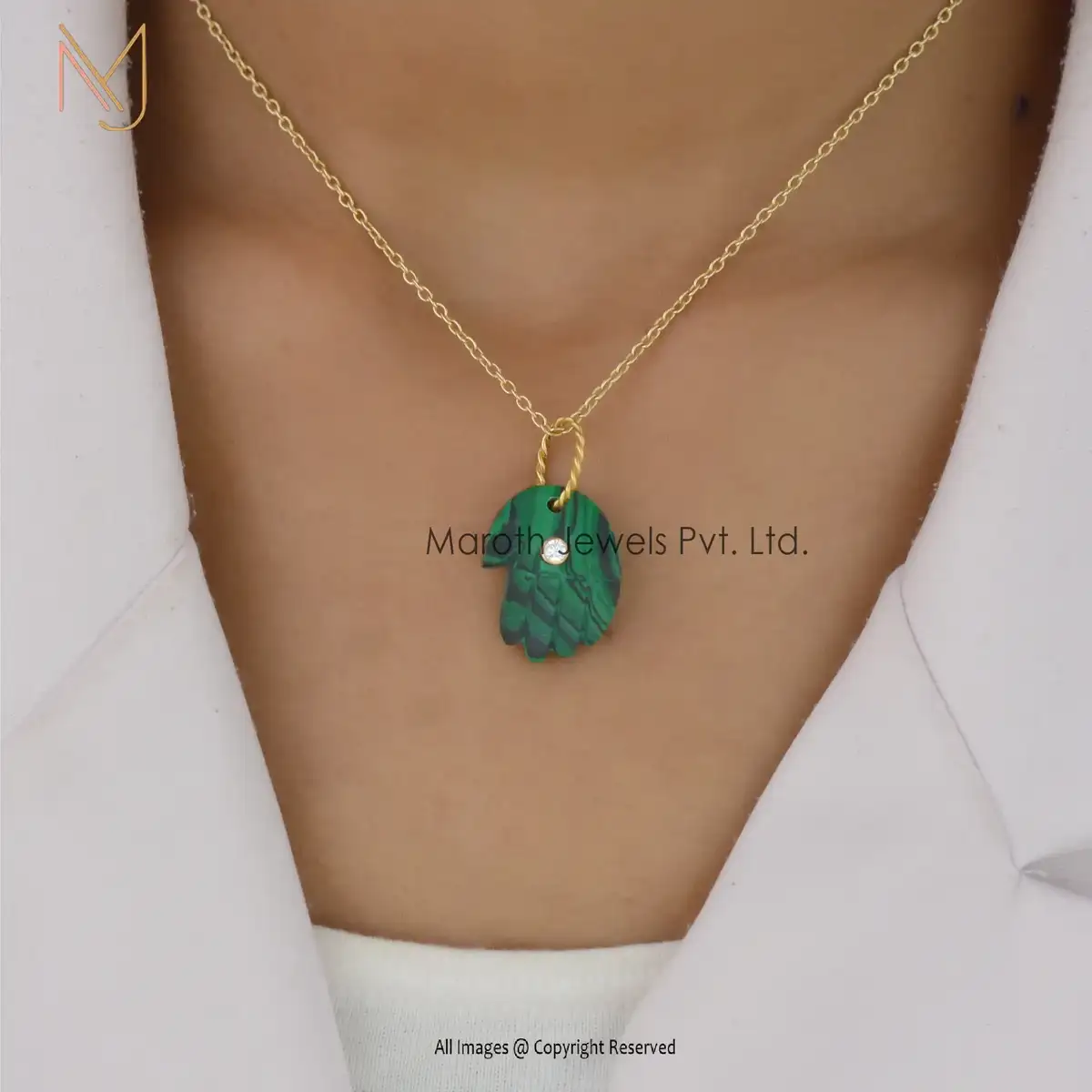 Wholesale 14K Yellow Gold Malachite & White Topaz Figa Pendant Jewelry