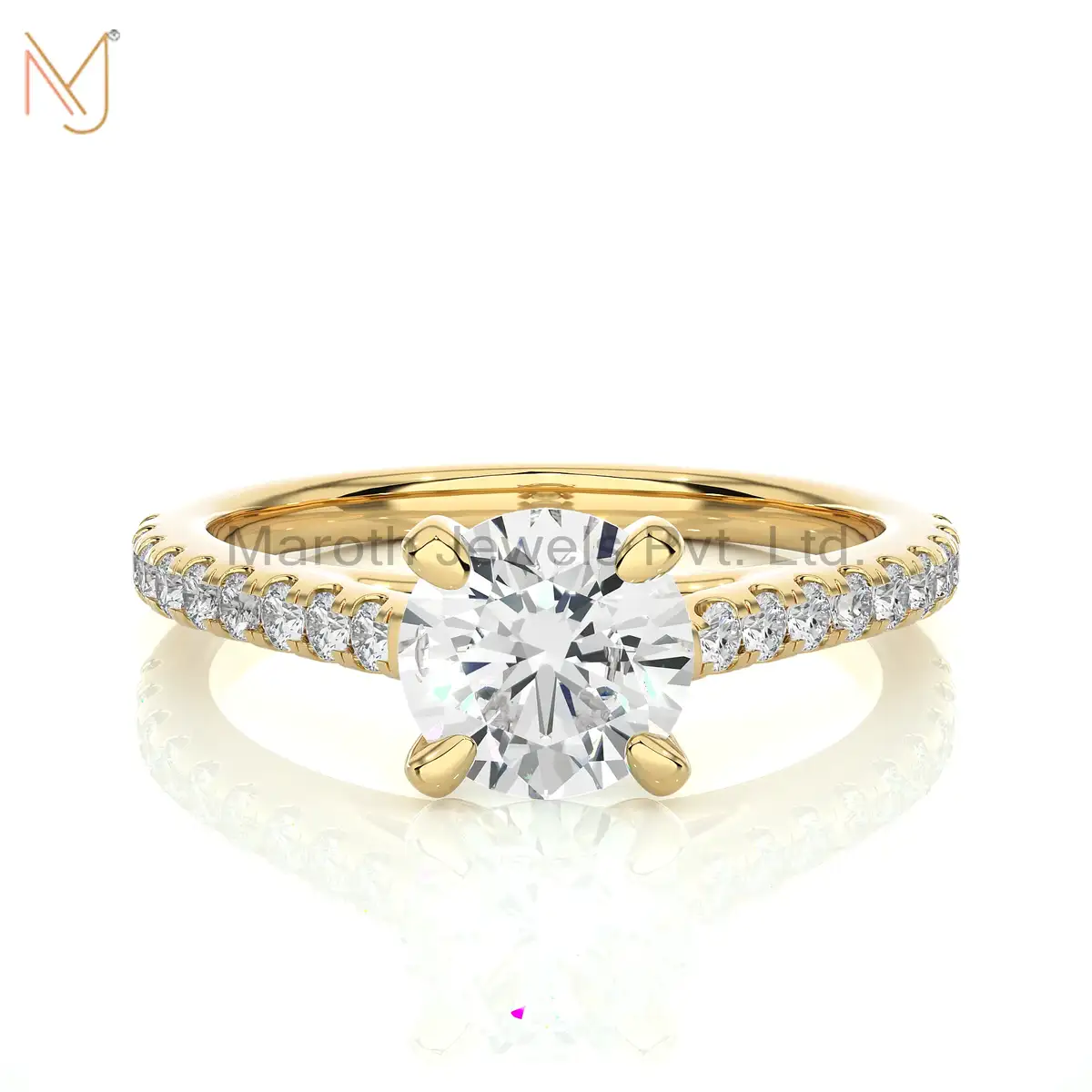 Wholesale 14K Yellow Gold Moissanite Diamond Round Ring