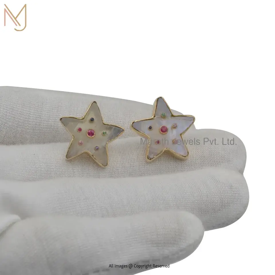 Wholesale 14K Yellow Gold Moonstone And Multi Gemstone Star Earring