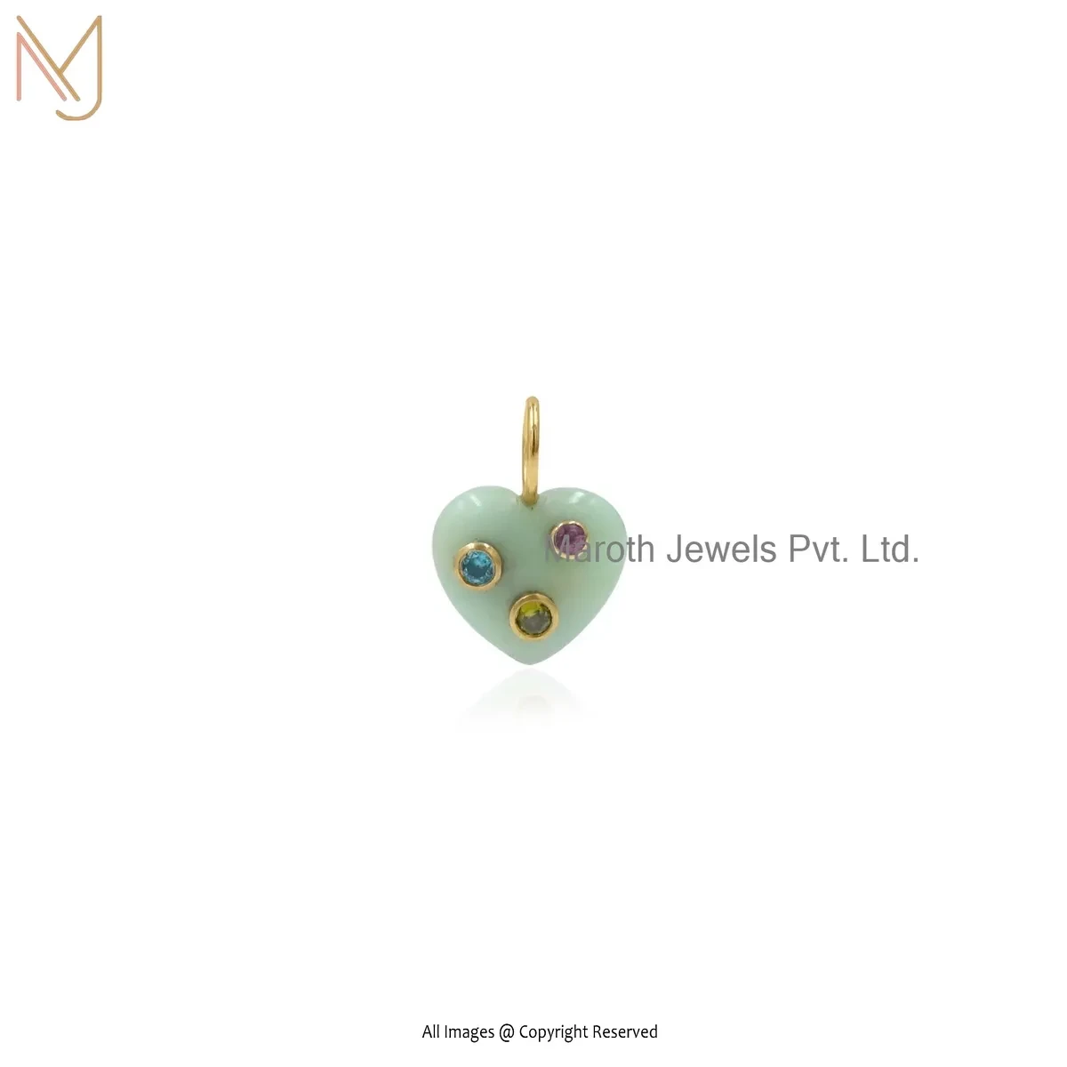 Wholesale 14K Yellow Gold Multi Cubic Zorcon Carneline Gemstone Heart Pendant