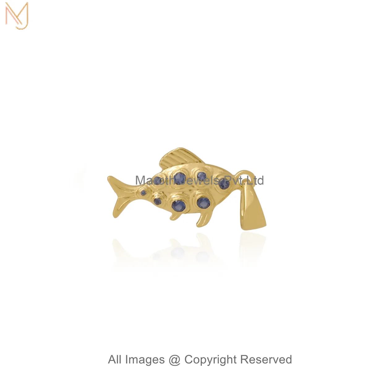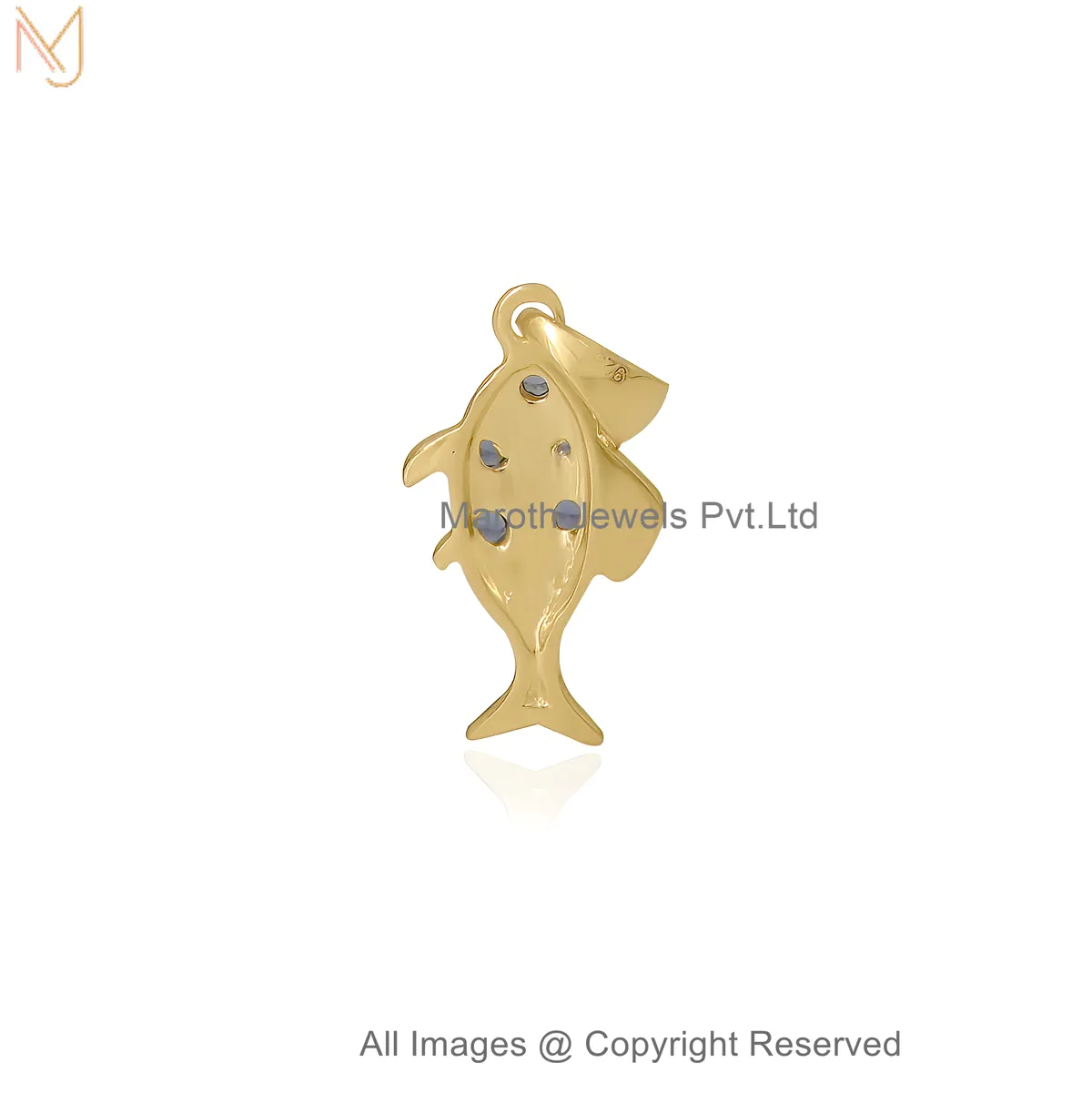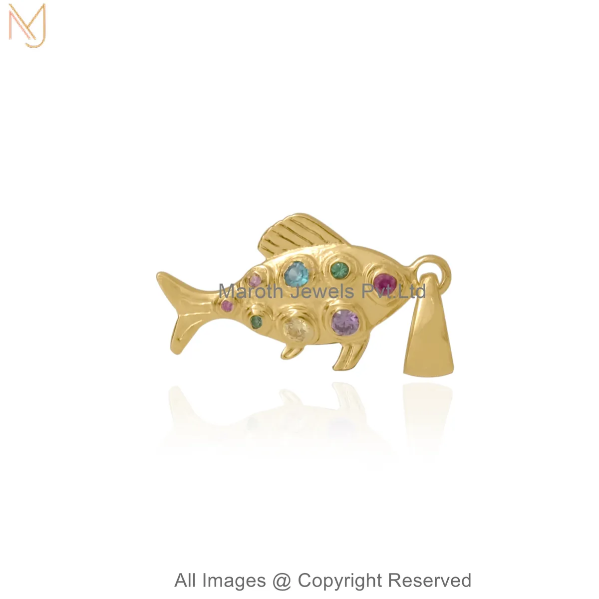 Wholesale 14K Yellow Gold Multi-Diamond Gemstone Ornamental Fish Pendant