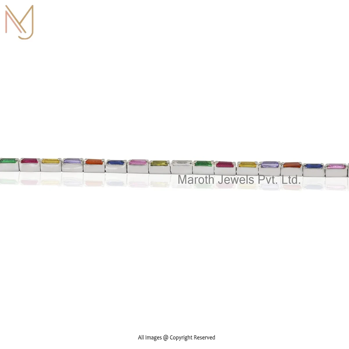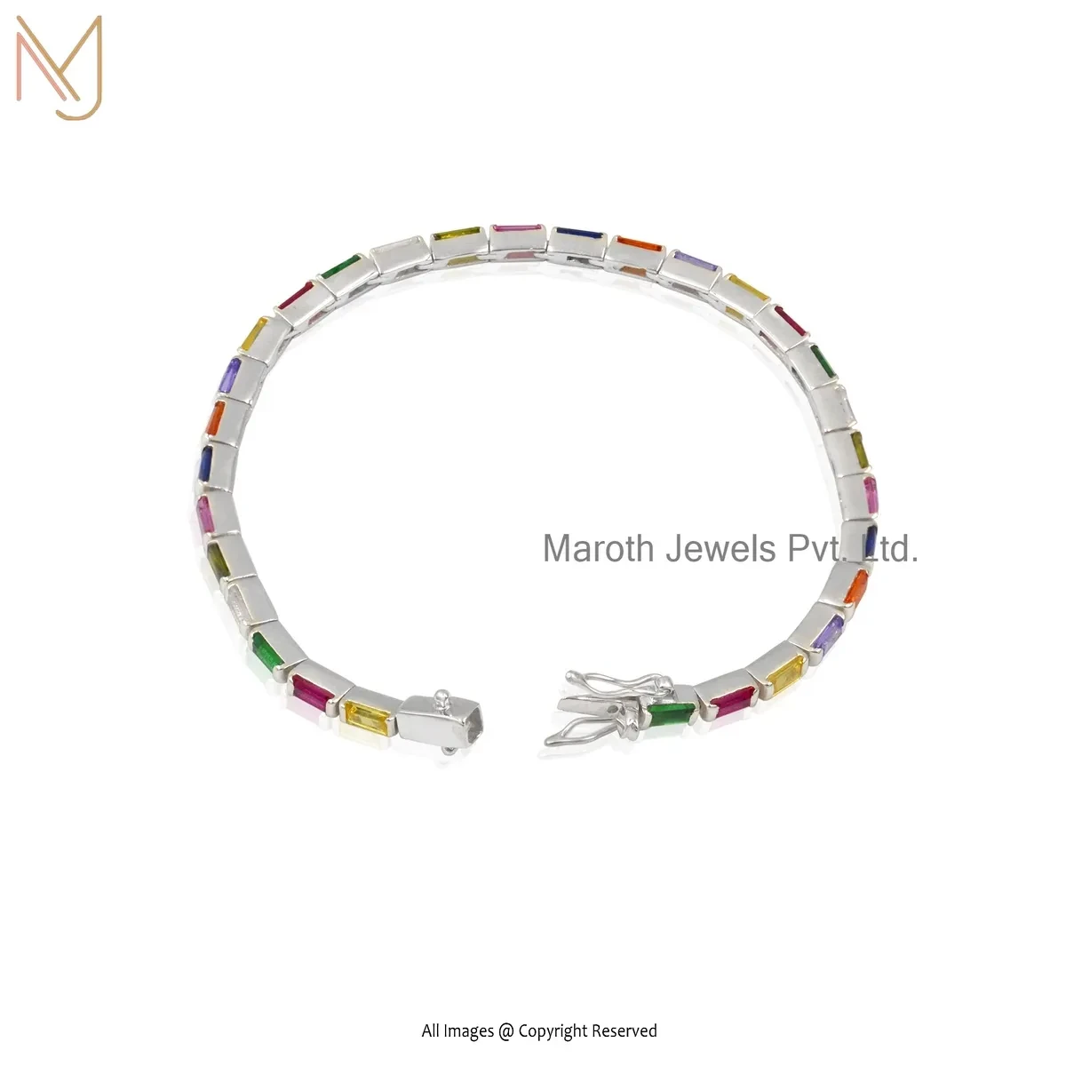 Wholesale 14K Yellow Gold Multi Gemstone Baguette Tennis Bracelet