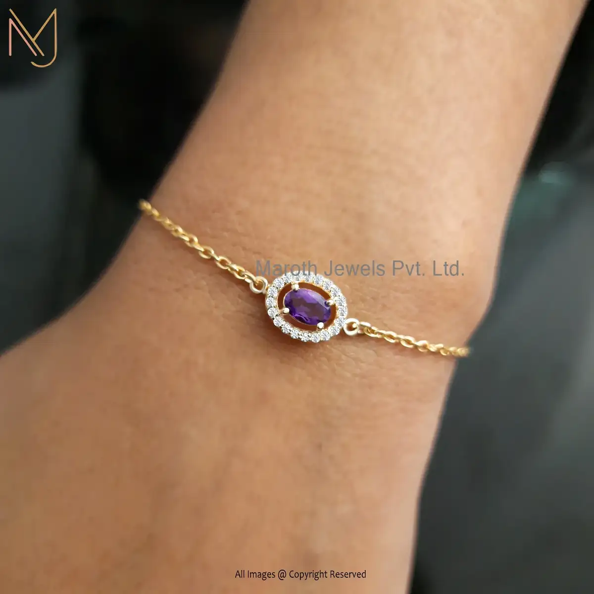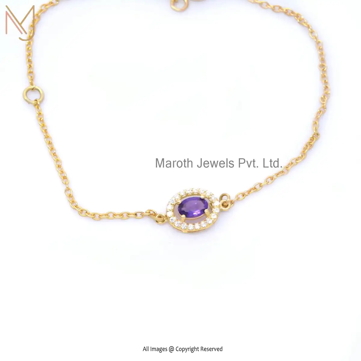Wholesale 14K Yellow Gold Oval White Topaz & Amethyst Gemstone Chain Bracelet Jewelry USA