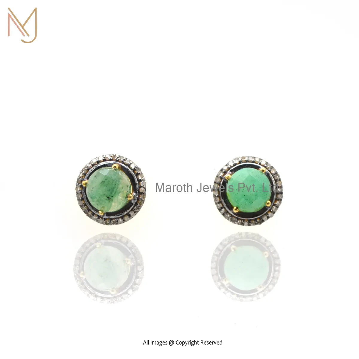 Wholesale 14K Yellow Gold Pave Diamond Emerald Gemstone Stud Earring