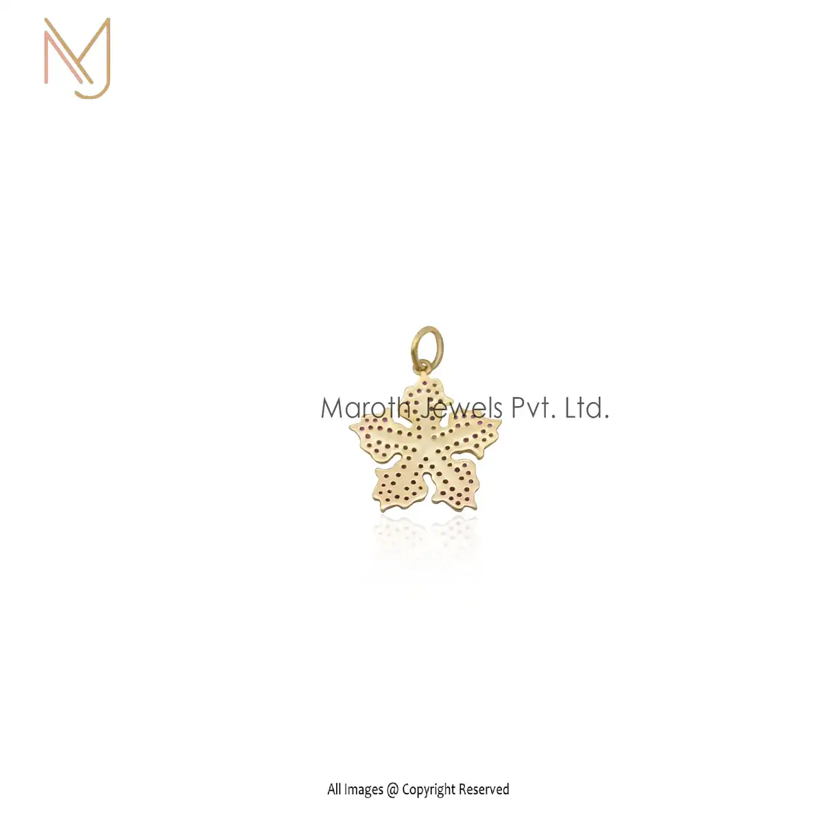 Wholesale 14K Yellow Gold Pink Cubic Zircon Flower Pendant Jewelry