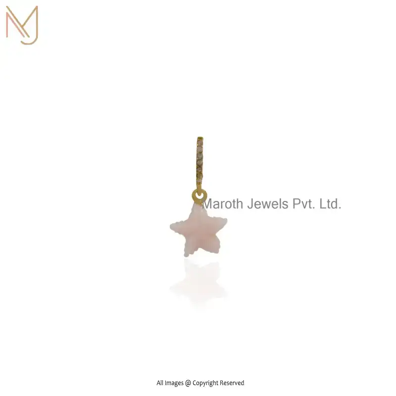 Wholesale 14K Yellow Gold Pink Opal Larimar And Diamond Starfish & Flower Charm Pendant