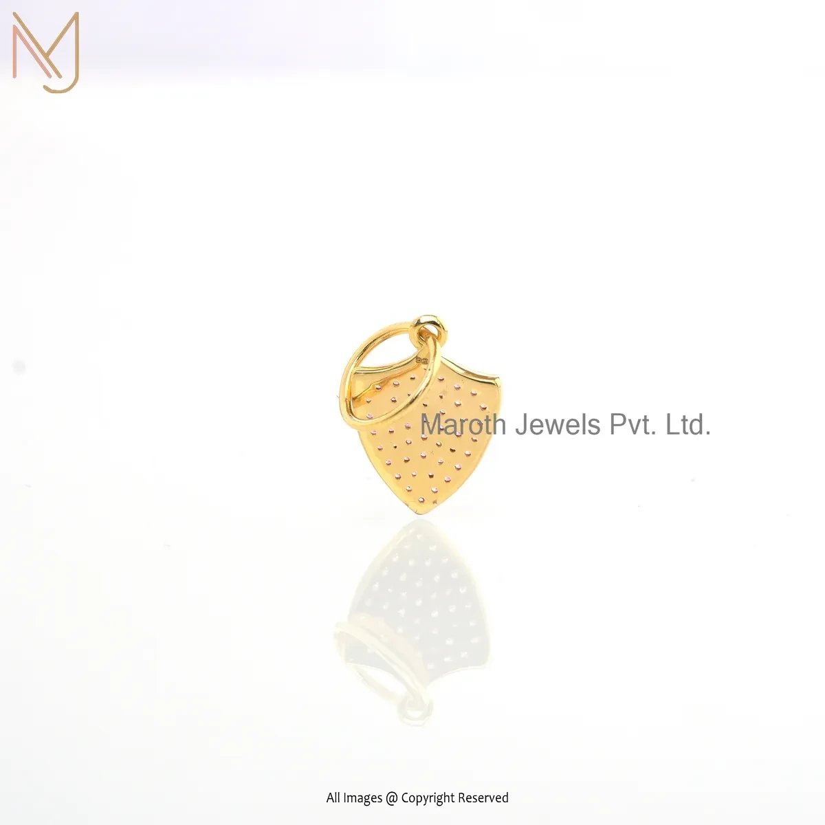 Wholesale 14K Yellow Gold Pink Sapphire Shield Charm Pendant Jewelry