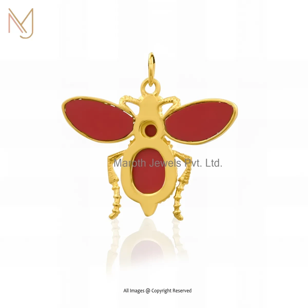 Wholesale 14K Yellow Gold Red Coral Gemstone Honey Bee Pendant Jewelry