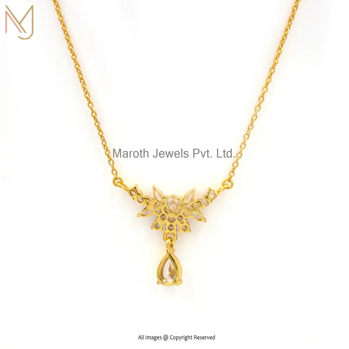 Wholesale 14K Yellow Gold Round And Leaf Cubic Zircon Necklace Jewelry