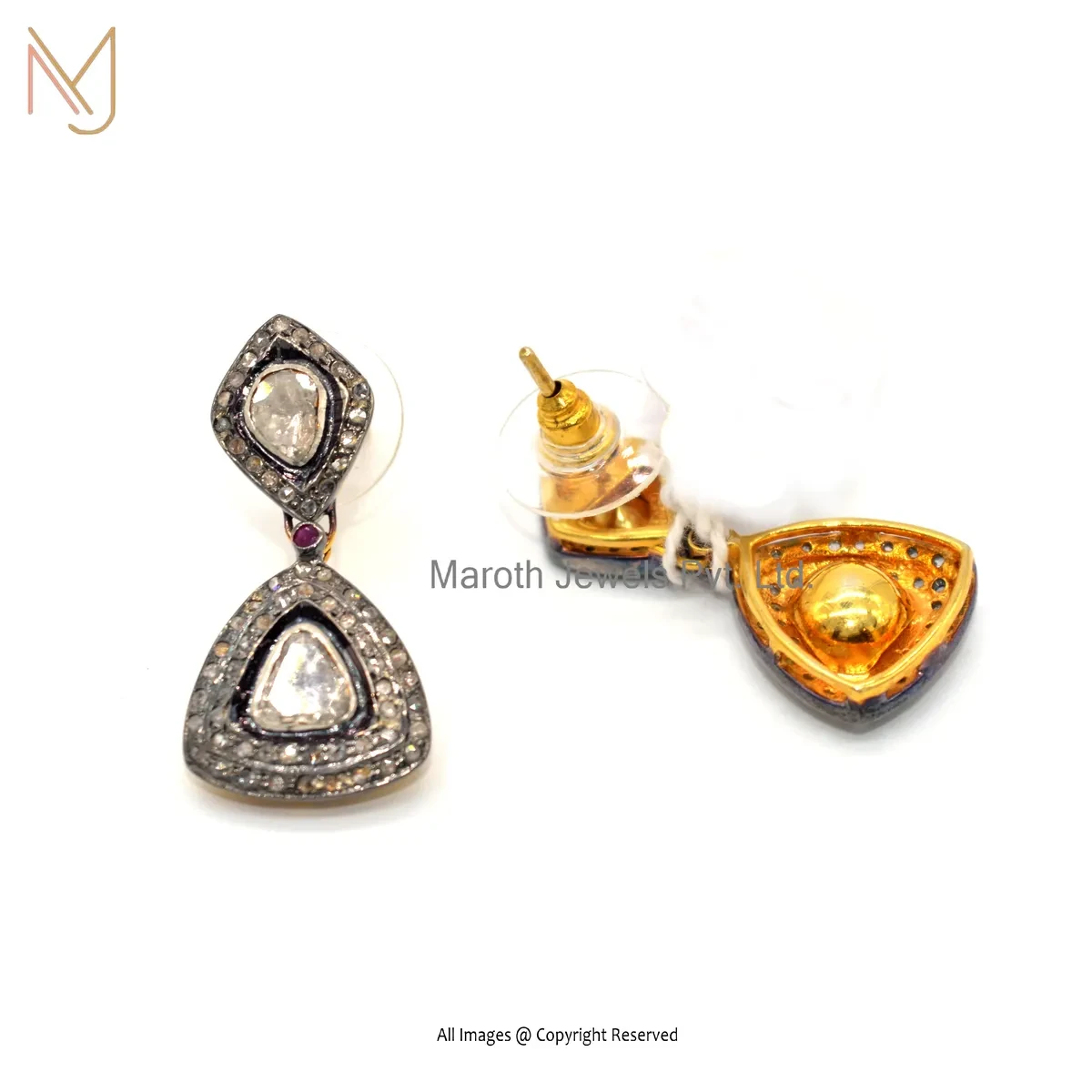 Wholesale 14K Yellow Gold Ruby Pave Diamond Rose Cut Polki Diamond Dangle Earring