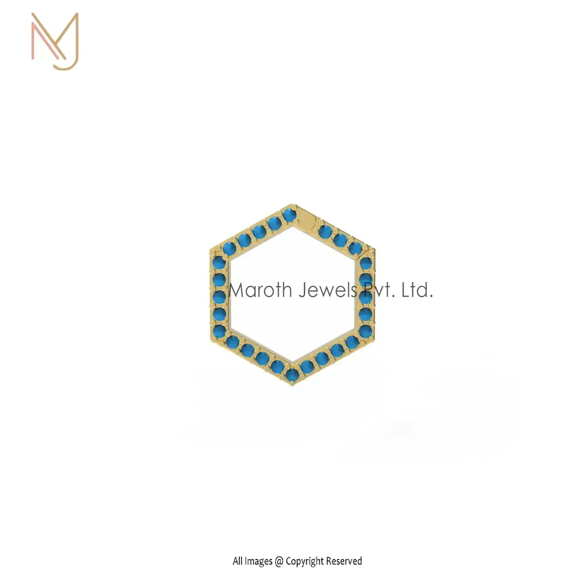 Wholesale 14K Yellow Gold Turquoise Gemstone Hexagon Enhancer Jewelry