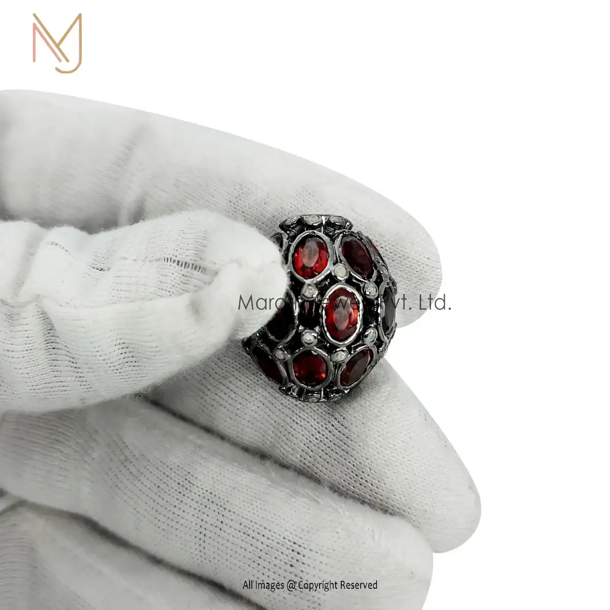 Wholesale 925 Silver Black Rhodium Plated Diamond And Garnet Gemstone Beads Finding