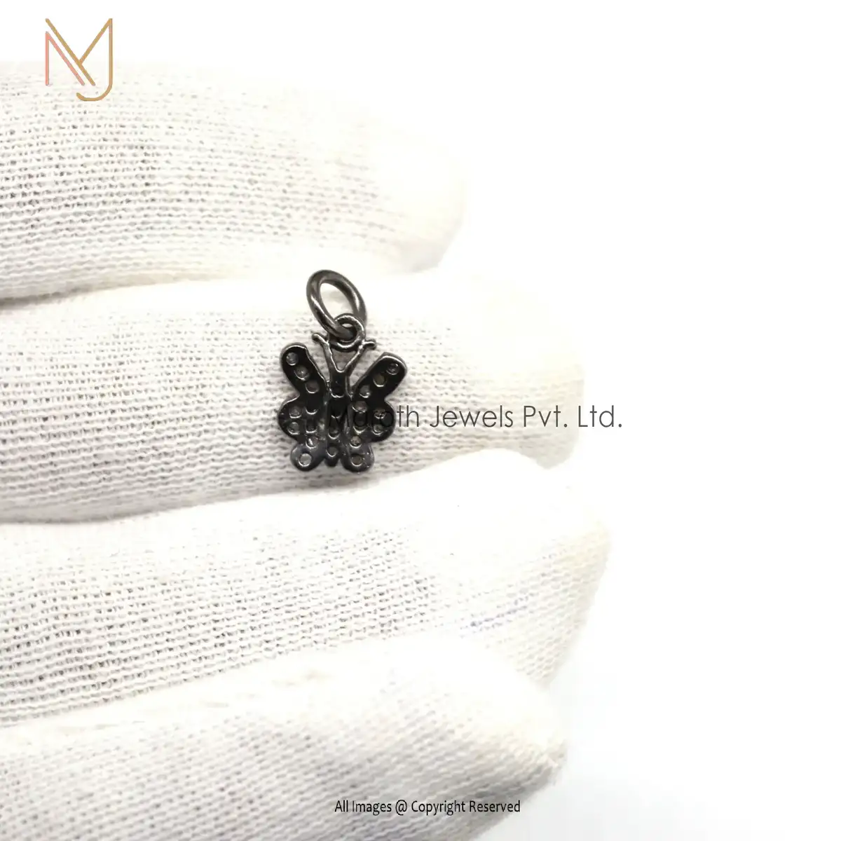 Wholesale 925 Silver Black Rhodium Plated Pave Diamond Charms Pendant Jewelry