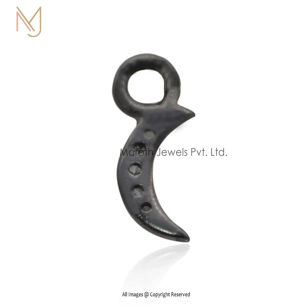 Wholesale 925 Silver Black Rhodium Plated Pave Diamond Crescent Moon Half Pendant Jewelry