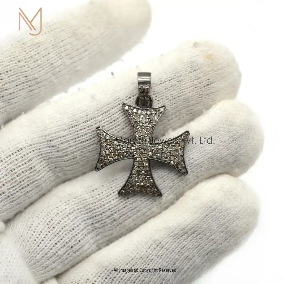 Wholesale 925 Silver Black Rhodium Plated Pave Diamond Cross Pendant Charms Jewelry