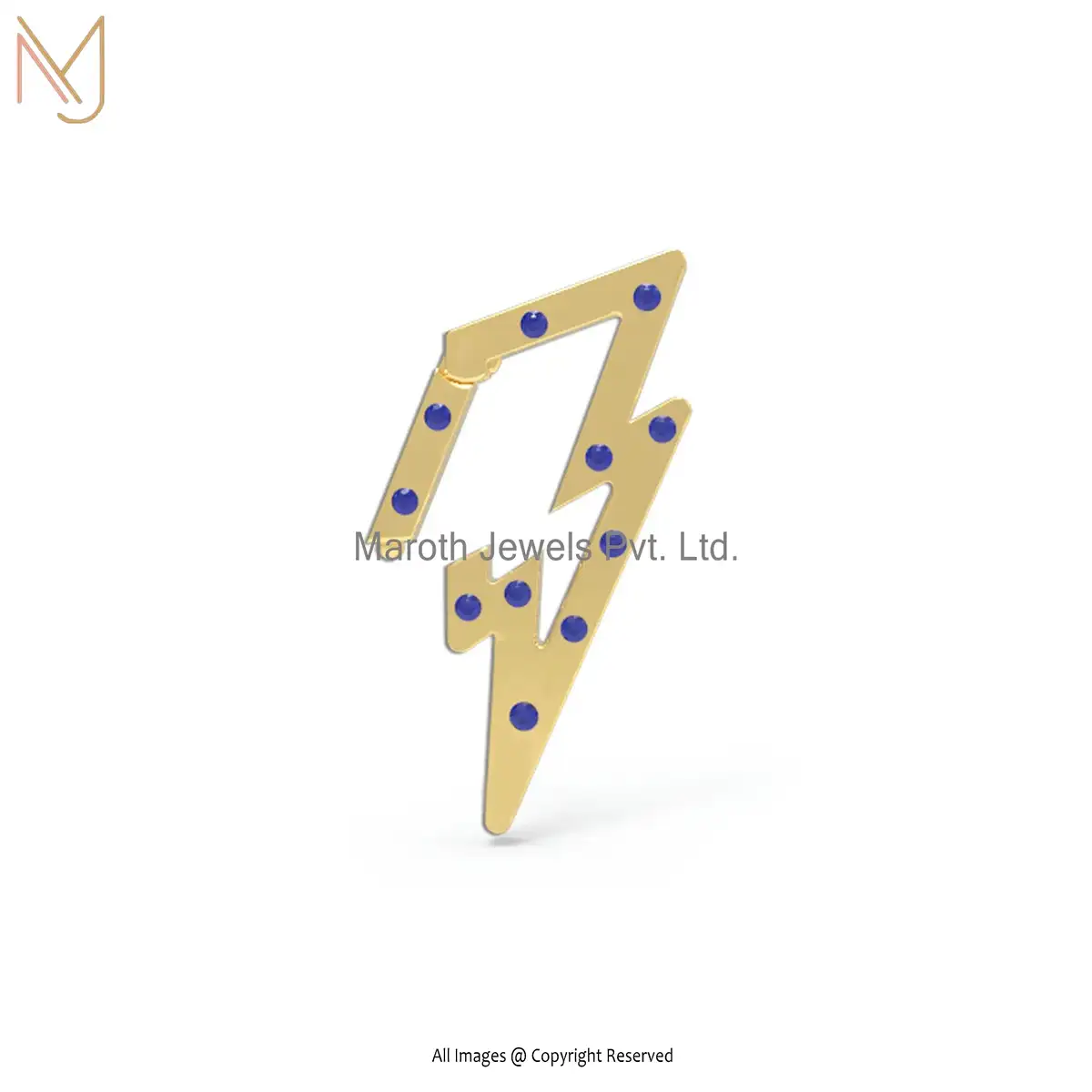 Wholesale 925 Silver Gold Platesd Blue Sapphire Gemstone Lighting Bolt Enhancer