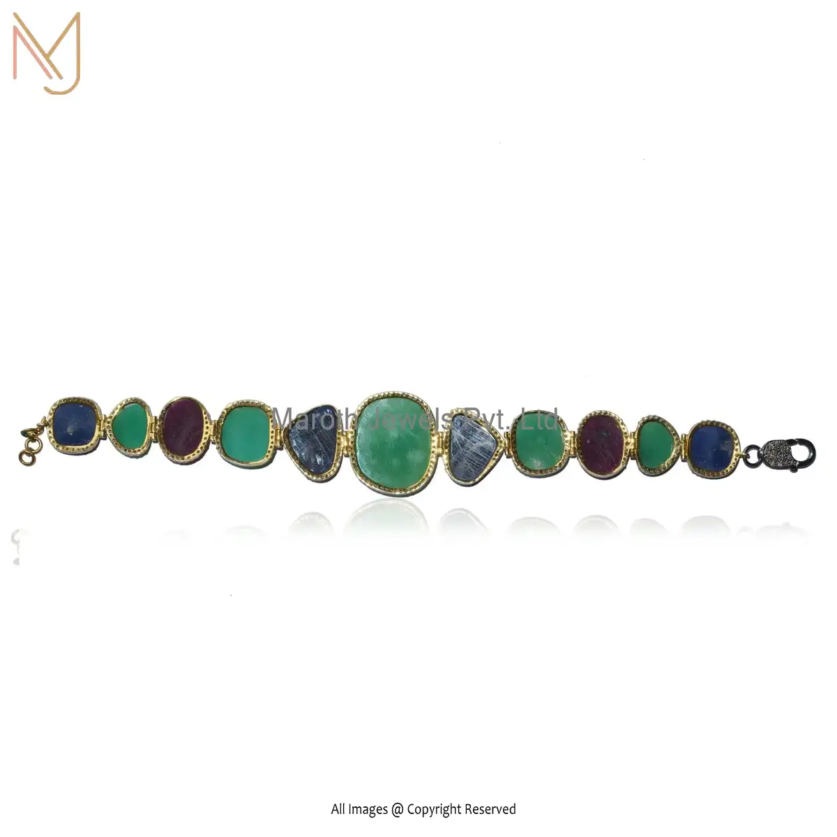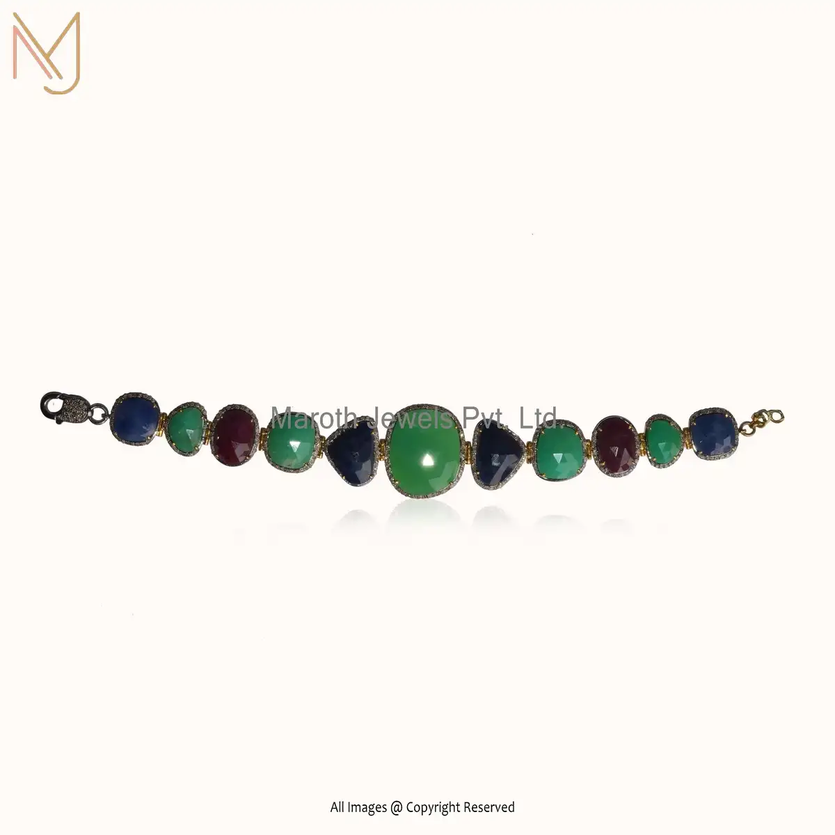Wholesale 925 Silver Rhodium Yellow Gold Plated Pave Diamond Garnet & Blue Sapphire & Green Quartz Gemstone Designer Bracelet