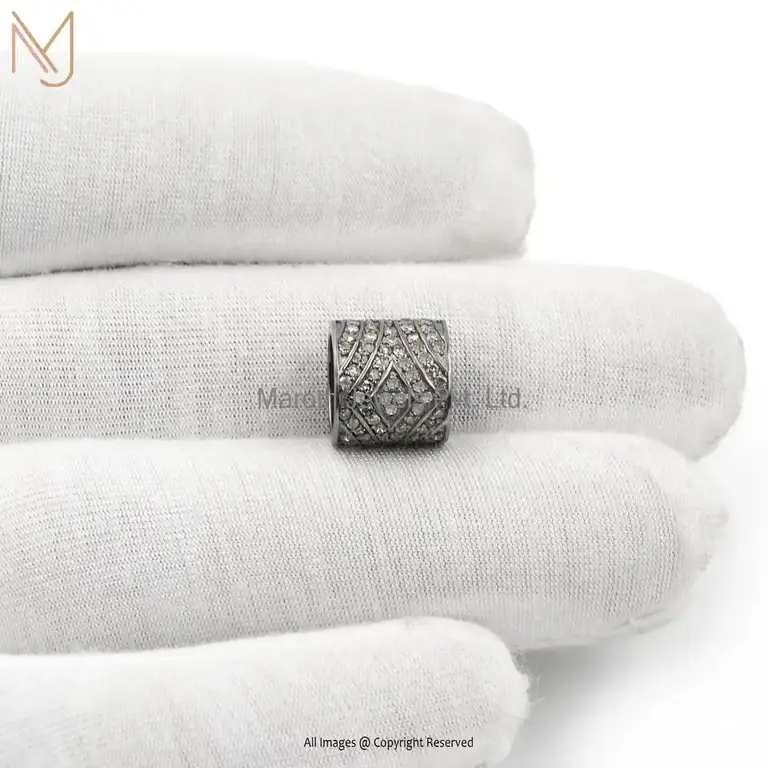 Wholesale 925 Silver Gray Rhodium Plated Pave Diamond Cylindrical Beads Finding Jewelry